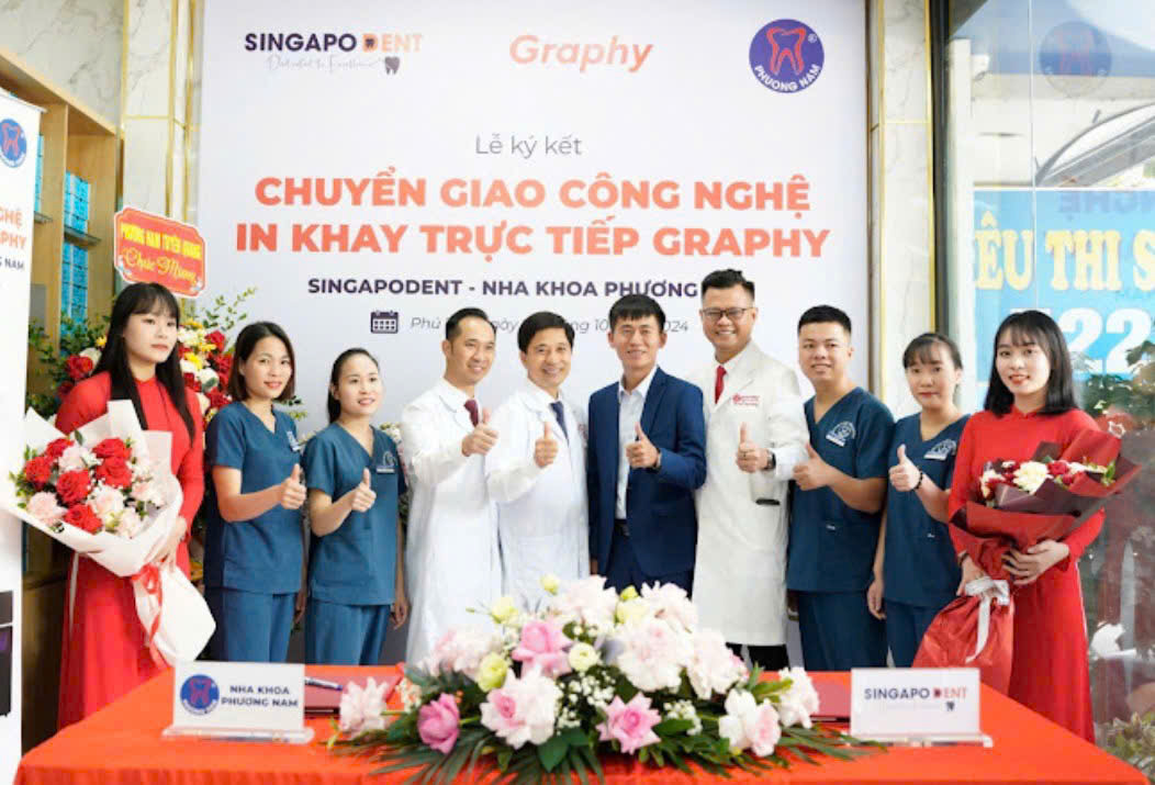 Nha khoa Phương Nam và SingapoDent tại buổi lễ ký kết chuyển giao công nghệ nghệ thuật Graphy - in 3D khay trong suốt trực tiếp tại phòng khám
