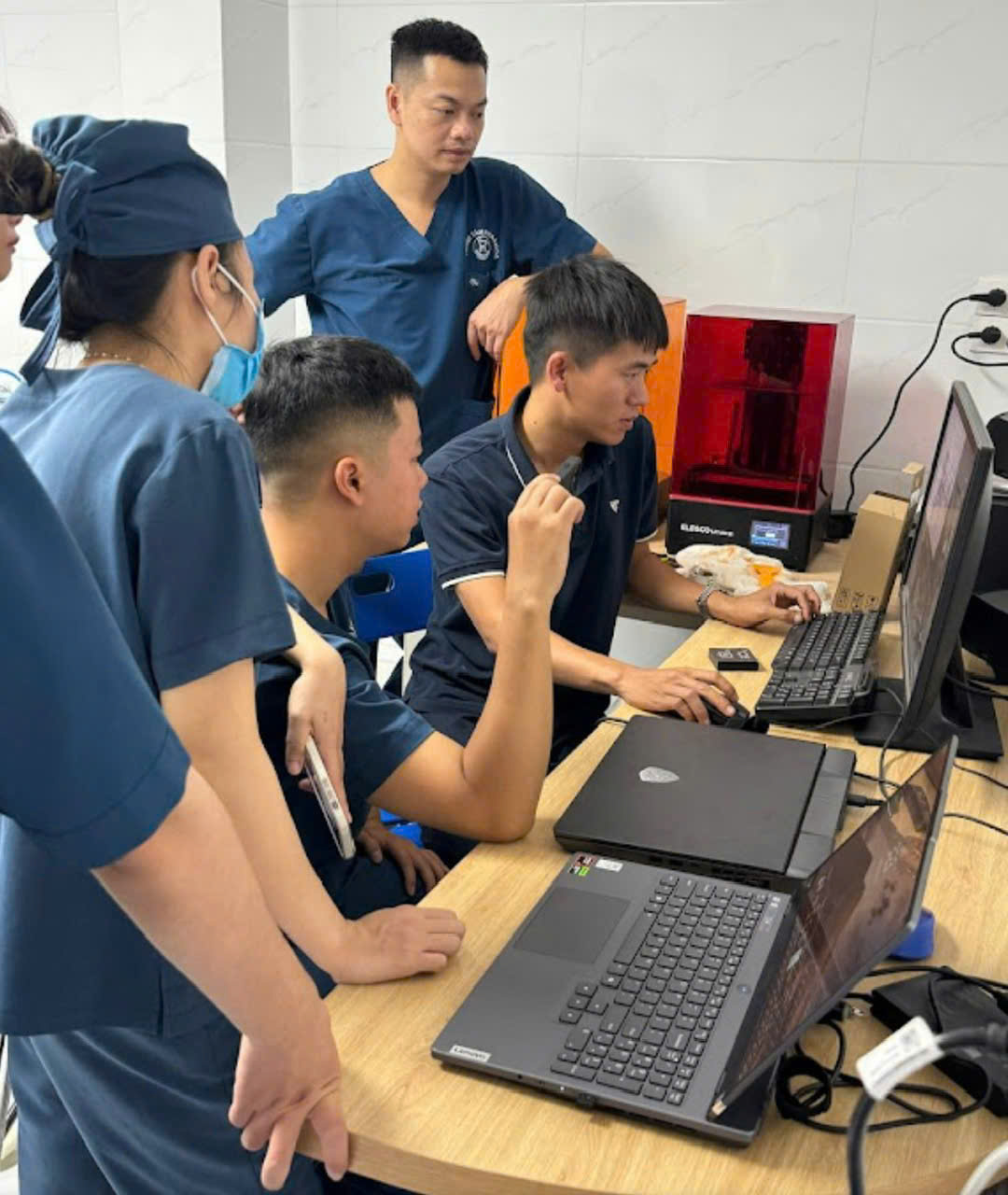 Trưởng phòng Kỹ Nguyễn Thuật Ngọc Lệnh thuộc SingapoDent đào tạo đội ngũ chuyên môn cách sử dụng công nghệ trong 3D trực tiếp tại phòng khám.