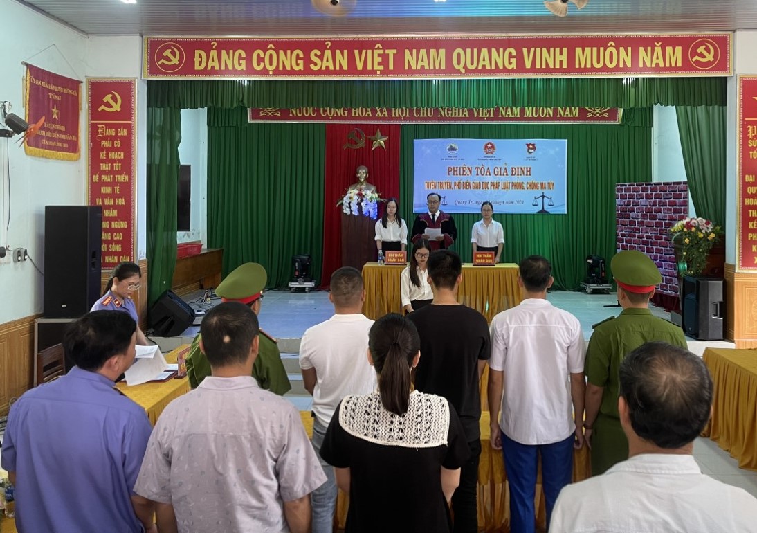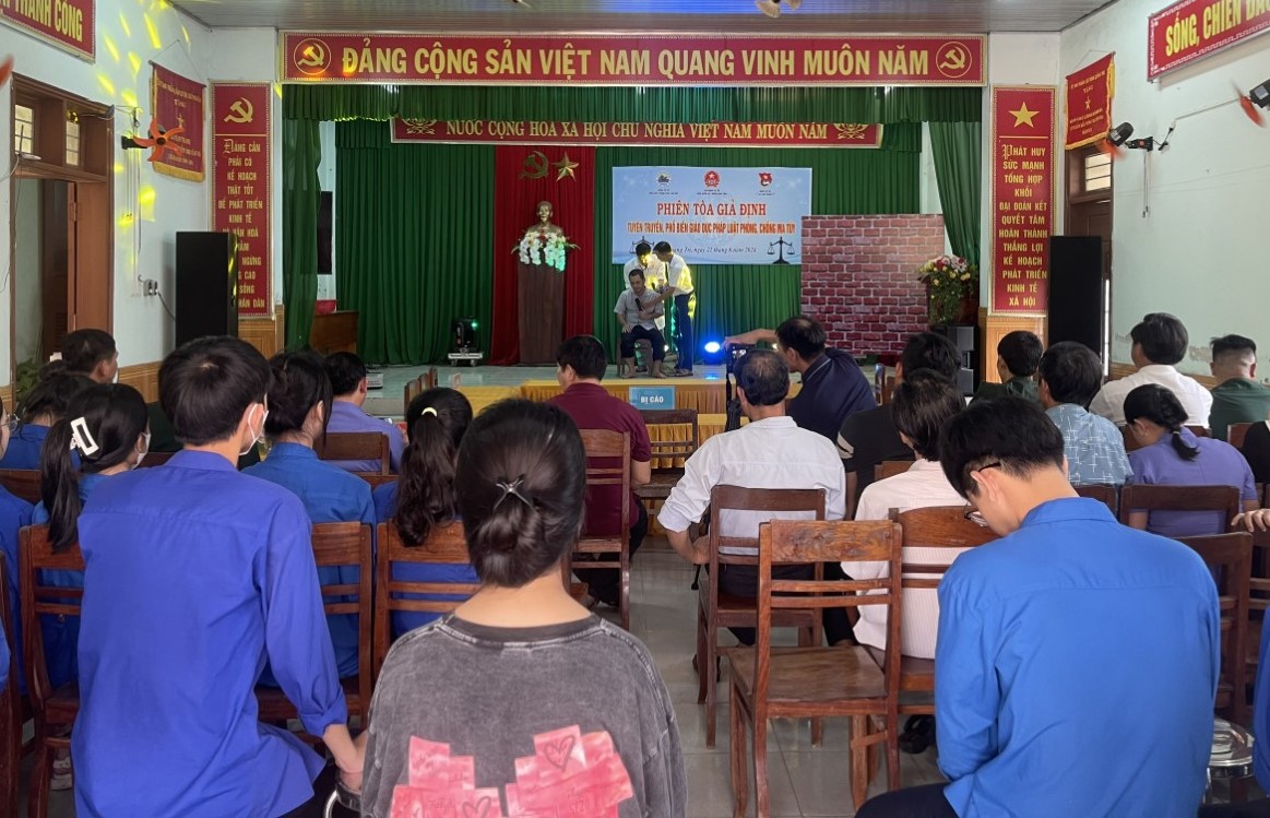 VNHS - Nằm trong các chuổi hoạt động Tháng hành động phòng, chống ma túy, hưởng ứng “Ngày toàn dân phòng, chống ma túy - 26/6” năm 2024. Ngày 22/6/2024 tại UBND xã Tân Thành, huyện Hướng Hóa, tỉnh Quảng Trị, Đoàn cơ sở Đồn Biên phòng CKQT Lao Bảo, Chi đoàn Viện Kiểm sát nhân dân tỉnh phối hợp với xã Đoàn Tân Thành tổ chức Phiên tòa giả định tuyên truyền, phổ biến giáo dục pháp luật phòng, chống ma túy.