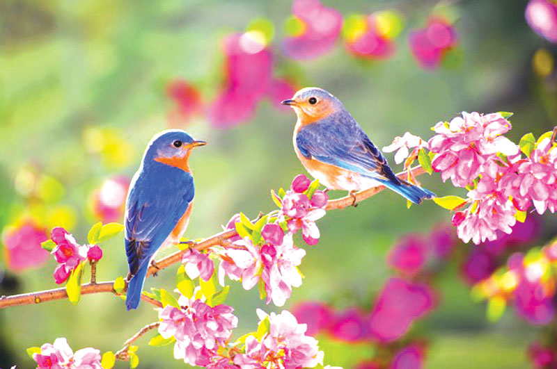 Xuân lại về trên mọi miền đất nước, những cánh chim én từng đàn bay lượn giữa bầu trời xanh thẳm mừng đón xuân sang. Ngước nhìn những áng mây hồng quyện vào những cụm mây trắng, xanh biếc da trời nhẹ nhàng bay theo từng làn gió ngút ngàn không trung. Tiết trời mùa xuân mơn man mát mẻ, hoa lá cỏ cây như vui vầy với đất trời vào xuân, tưng bừng đâm hoa nảy lộc.