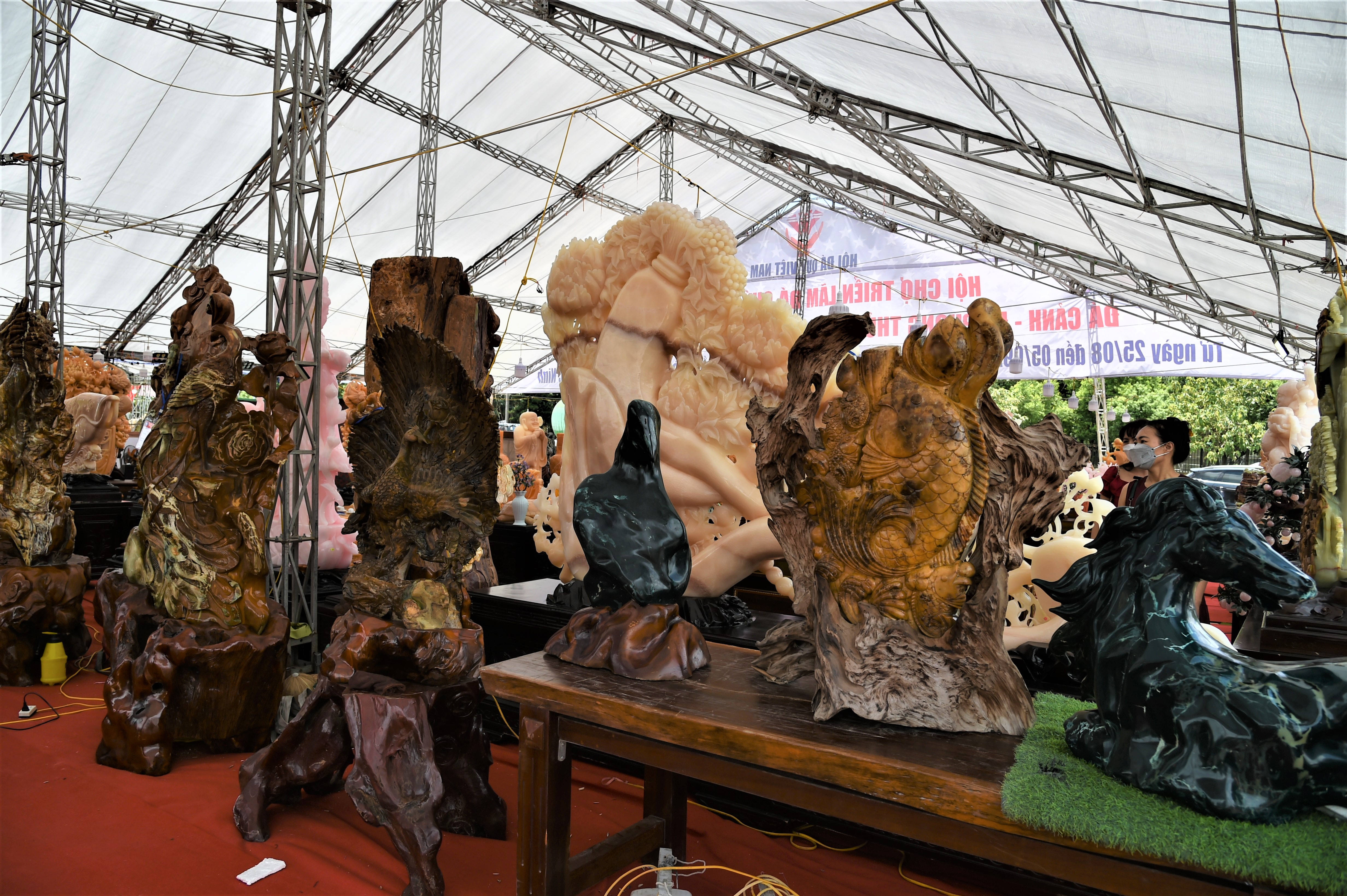 Tác phẩm gỗ hóa thạch rất độc đáo được nghệ nhân mang đến trưng bày tại triển lãm