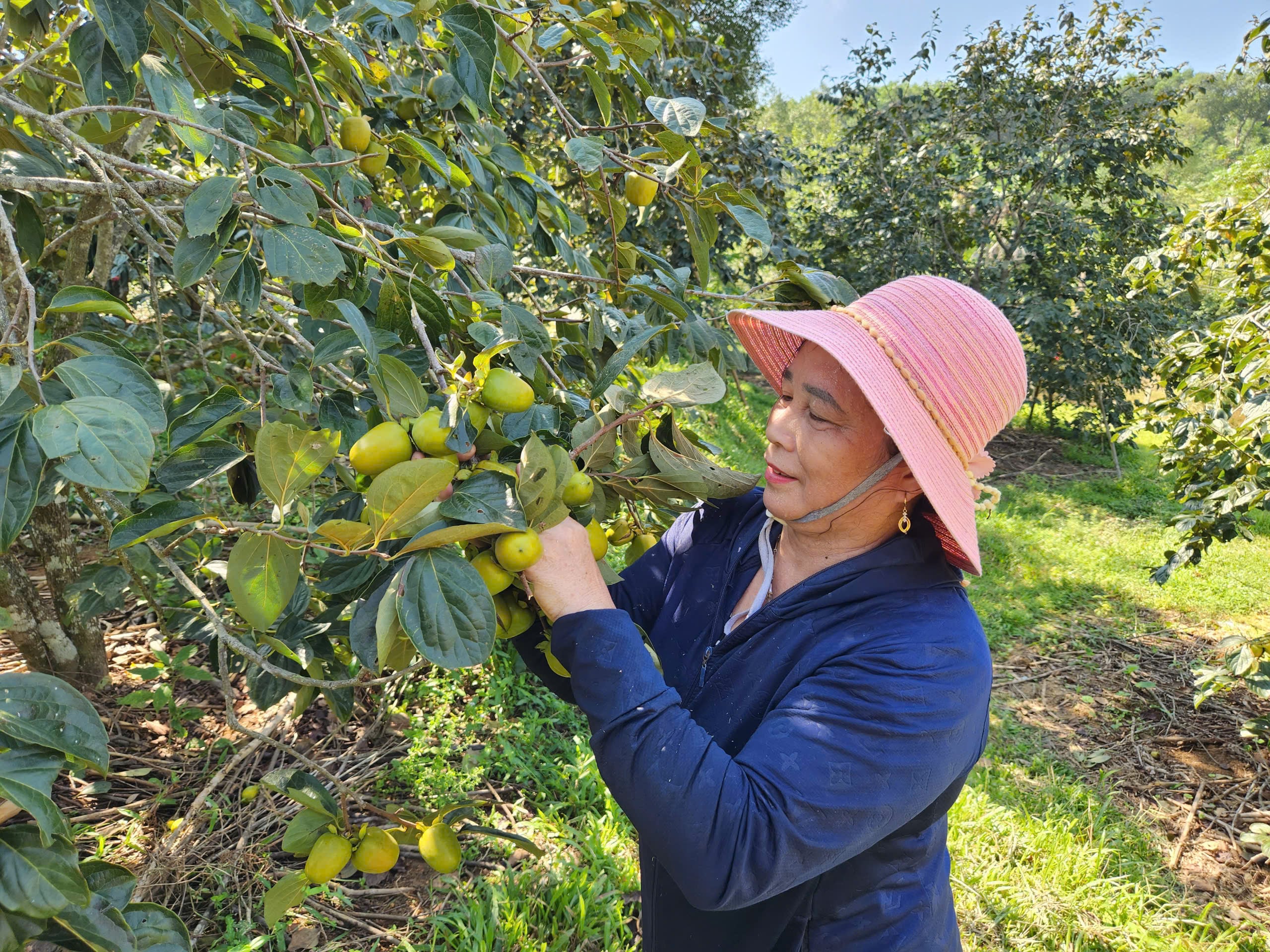 Anh Đường cho biết: Trước đây gia đình tôi chủ yếu trồng cam và trồng xen kẽ thêm cây hồng. Sau khi cây cam bị thoái hóa thì chặt bỏ cam để cho hồng phát triển. Với vườn hồng của gia đình tôi, năm nay sản lượng và chất lượng đều tăng hơn so với năm ngoái. Mùa hồng này, gia đình tôi đã hái được khoảng 3 tấn quả, ngoài vườn vẫn còn rất nhiều. Hiện nay, lượng khách đặt hàng mỗi ngày một tăng, hái được bao nhiêu họ lấy hết bấy nhiêu. Năm trước, cả vườn hồng của gia đình đạt 5 tấn, nhưng năm nay đạt khoảng 7 tấn. Tôi thấy cây hồng mang lại hiệu quả hơn nhiều so với trồng cam.
