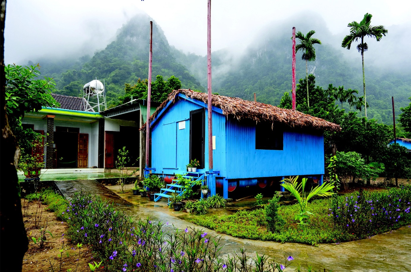 Tú Làn Lodge là mô hình lưu trú dựa vào vách núi để thích ứng thời tiết ở vùng "rốn lũ" Tân Hóa.