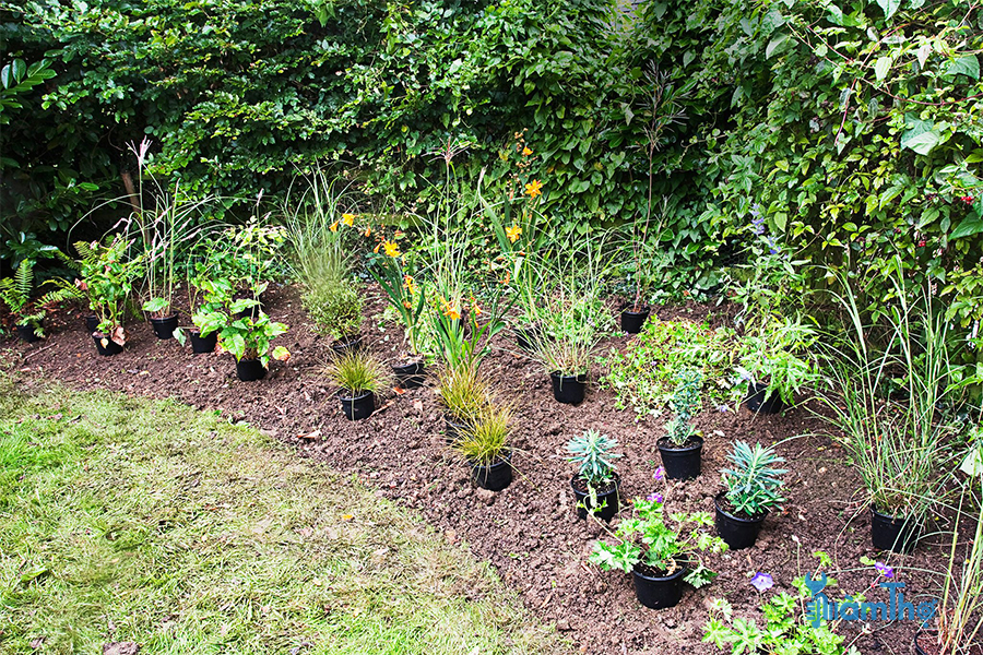 Sau khi trồng cây hoặc cây bụi (hoặc cây thân thảo trên đất nghèo dinh dưỡng), hãy phủ một lớp mùn rộng rãi. Đó có thể là phân chuồng, vụn vỏ cây hoặc phân trộn tự chế vì nó giúp giữ ẩm và bổ sung các chất dinh dưỡng giải phóng chậm khi phân hủy. Đừng phủ lớp mùn xung quanh gần sát gốc cây - root flare quan trọng nhất phải được nhìn thấy.