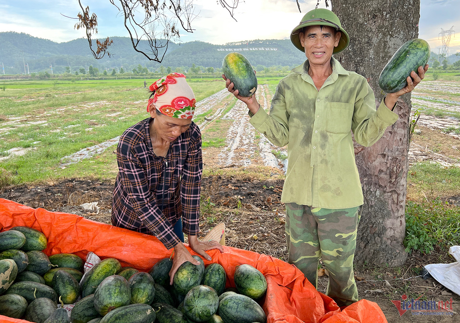 Những ngày này, dọc tuyến đường vào trung tâm hành chính xã Thượng Tân Lộc (huyện Nam Đàn, Nghệ An), rất nhiều xe thô sơ chở đầy dưa hấu đỏ và các loại dưa khác bày bán ven đường.