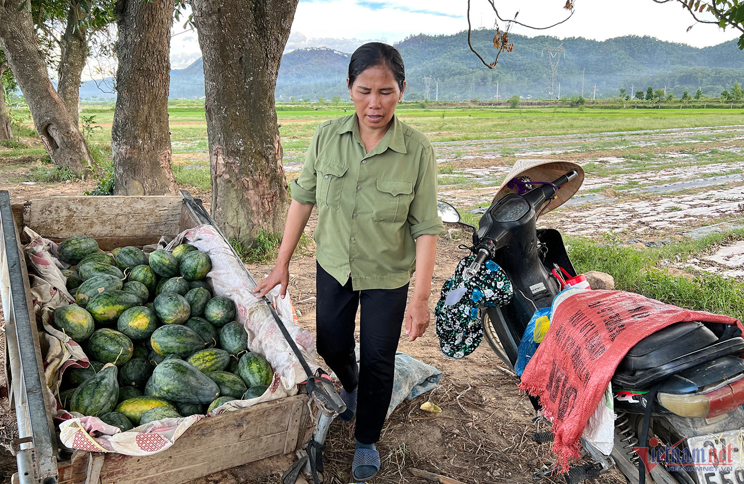 Ông Nguyễn Văn Tiến (SN 1962, chồng bà Vân) vừa chở xe dưa từ dưới ruộng lên cho vợ bán, chia sẻ: “Dưa đẹp bán cho thương lái trung bình chỉ được 5.500 đồng/kg, bán lẻ 7.000- 8.000 đồng/kg. Gia đình trồng 5 sào dưa cho thu nhập khoảng 30 triệu đồng”.