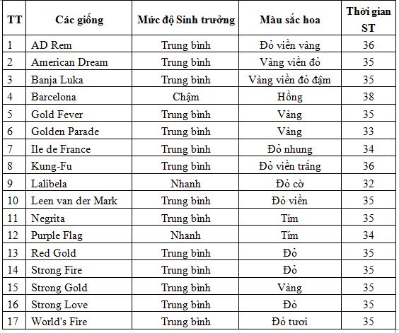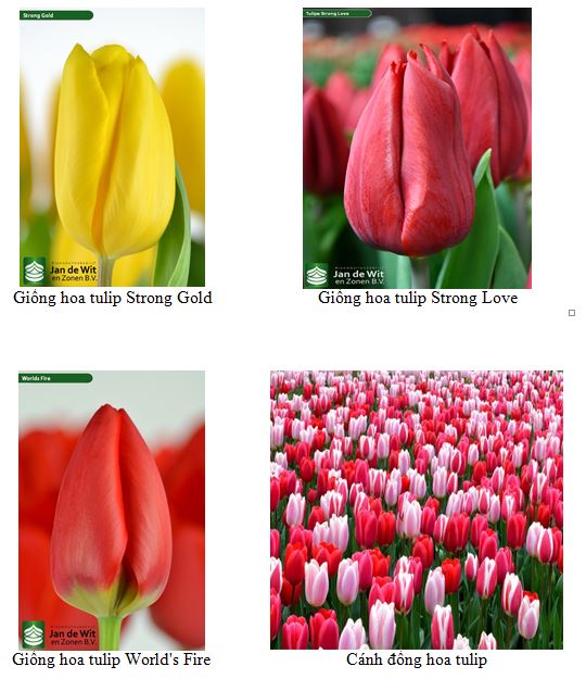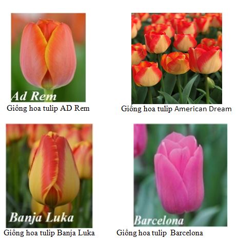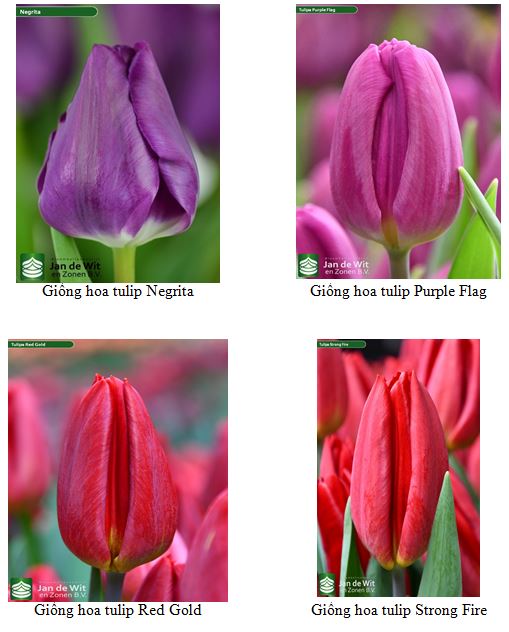 Các giống hoa tulip trồng ở Việt Nam đều có nguồn gốc nhập nội, chỉ có một số giống tulip mới phù hợp với điều kiện Việt Nam. Tùy theo các giống mà thời gian sinh trưởng khác nhau, sau đây là thời gian sinh trưởng của một số giống phổ biến: