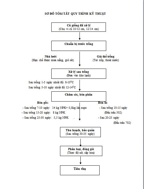 - Ngay sau trồng đưa vào kho lạnh, nhiệt độ 8-100C, sau 5 ngày nhiệt độ 12-140C, sau 7-10 ngày đưa ra ngoài vườn sản xuất.