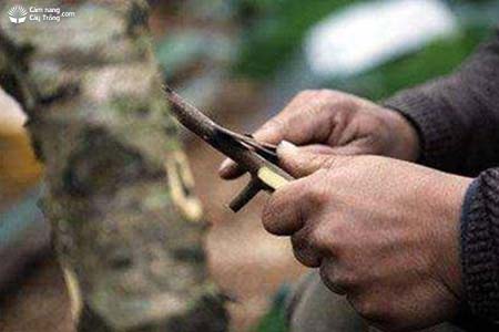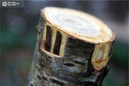 - Trên gốc đào chúng ta cắt một vết cắt để đưa mắt ghép vào gốc