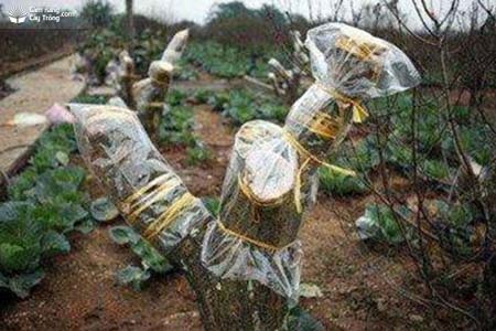 - Phủ túi nylon để tránh hiện tượng thoát hơi nước quá mạnh của mắt ghép và đồng thời tránh nước xâm nhập vào vết ghép