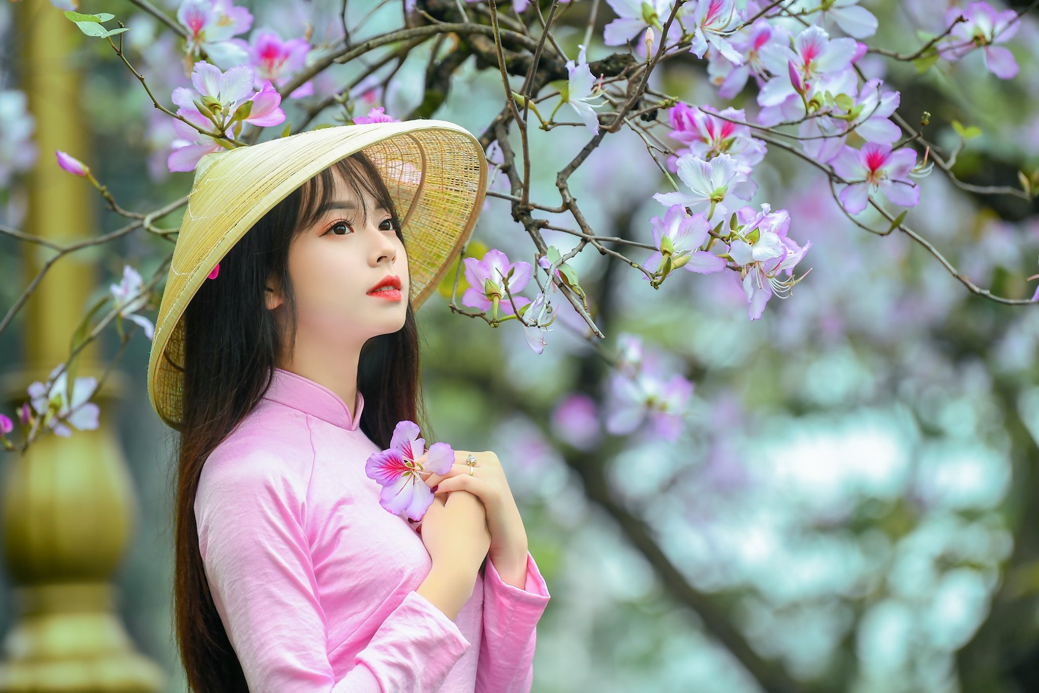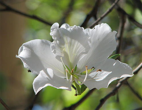 Bông hoa ban có 5 cánh, thường có màu trắng sọc hồng, tím, phớt tím và hồng