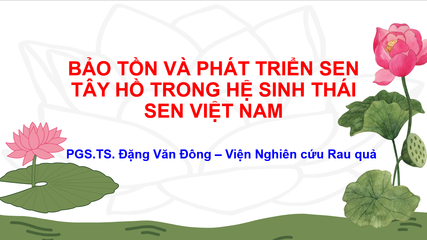 VNHS - Tạp chí Việt Nam Hương sắc xin trân trọng giới thiệu bài tham luận của PGS.TS Đặng Văn Đông – Phó Viện trưởng Viện Nghiên cứu Rau quả - tại Hội thảo về “Bảo tồn và phát triển hoa Sen Việt Nam” được tổ chức chiều nay (12.7) trong khuôn khổ lễ hội Sắc Sen Hà Nội 2024.
