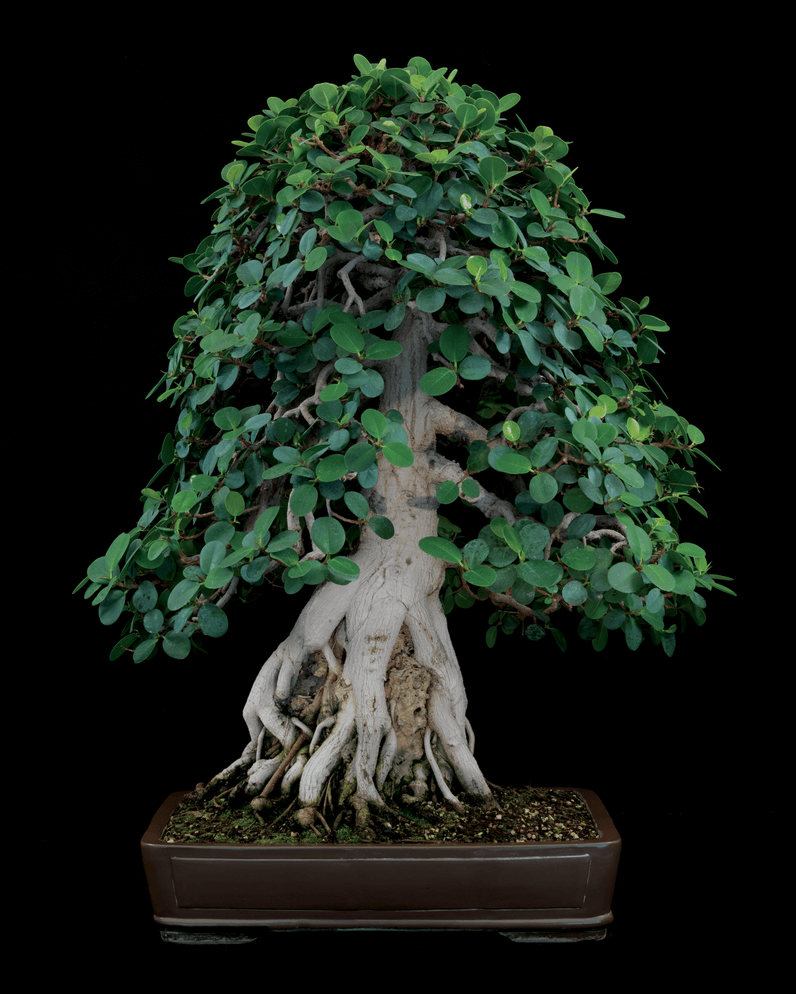 Rễ cây: là phần gây ấn tượng mạnh nhất cho người xem, ở tự nhiên những cây cổ thụ lâu năm vì sự sống chúng cần phải sinh ra nhiều rễ hơn để hấp thụ chất dinh dưỡng, những phần rễ già để tiếp tục hấp thụ dưỡng chất thì chúng cần phải phát triển to hơn. Ở một vài trường hợp rễ sẽ phát triển thành những hình thù kì quái, trồi lên mặt đất thể hiện sự to khỏe và sức sống dồi dào. Với cây cảnh bonsai, bộ rễ đẹp là rễ có sự lan tỏa ra xung quanh và không chồng chéo lên nhau hay mọc lung tung.