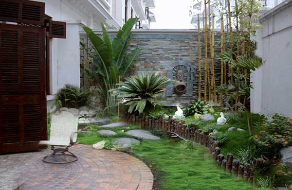 Đối với diện tích không gian kiến trúc nhỏ hơn 2m2 bạn có thể chọn các mẫu thiết kế sân vườn có sẵn như hòn non bộ mini kết hợp với cây xanh, hoặc tiểu cảnh sân vườn làng quê được thiết kế theo mẫu có sẵn. Bạn cũng có thể lựa chọn một tiểu cảnh thác nước phong thủy trong sân vườn mini. Những dạng tiểu cảnh sân vườn mini này chủ yếu là những tiểu cảnh được thiết kế sẵn rất dễ để làm đẹp trang trí.