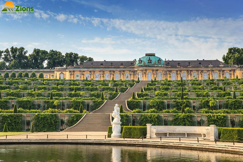 Một Công viên Versailles khác tại Đức, cung điện do Frederick Đại đế ra lệnh xây dựng từ thế kỷ 18. Sanssouci sở hữu cảnh quan tuyệt đẹp trên sườn dốc với những vườn hoa và rau xanh theo phong cách Rococo, cùng với đó là vườn nho bậc thang độc đáo.