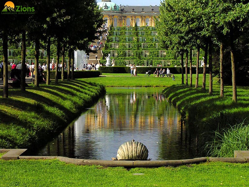 Cảnh quan sân vườn luôn được chú ý ngay từ thời phong kiến, từ những tu viện cho đến lâu đài, thành trì cho tới cung điện. Ở thế kỷ 17, kiến trúc lâu đài phát triển bùng nổ, các công trình công phu và thiết kế quy mô lớn được khuyến khích. Vì vậy, thiết kế cảnh quan lại càng trở nên quan trọng hơn, và luôn được chăm sóc, phục hồi đến thời kỳ hiện đại.