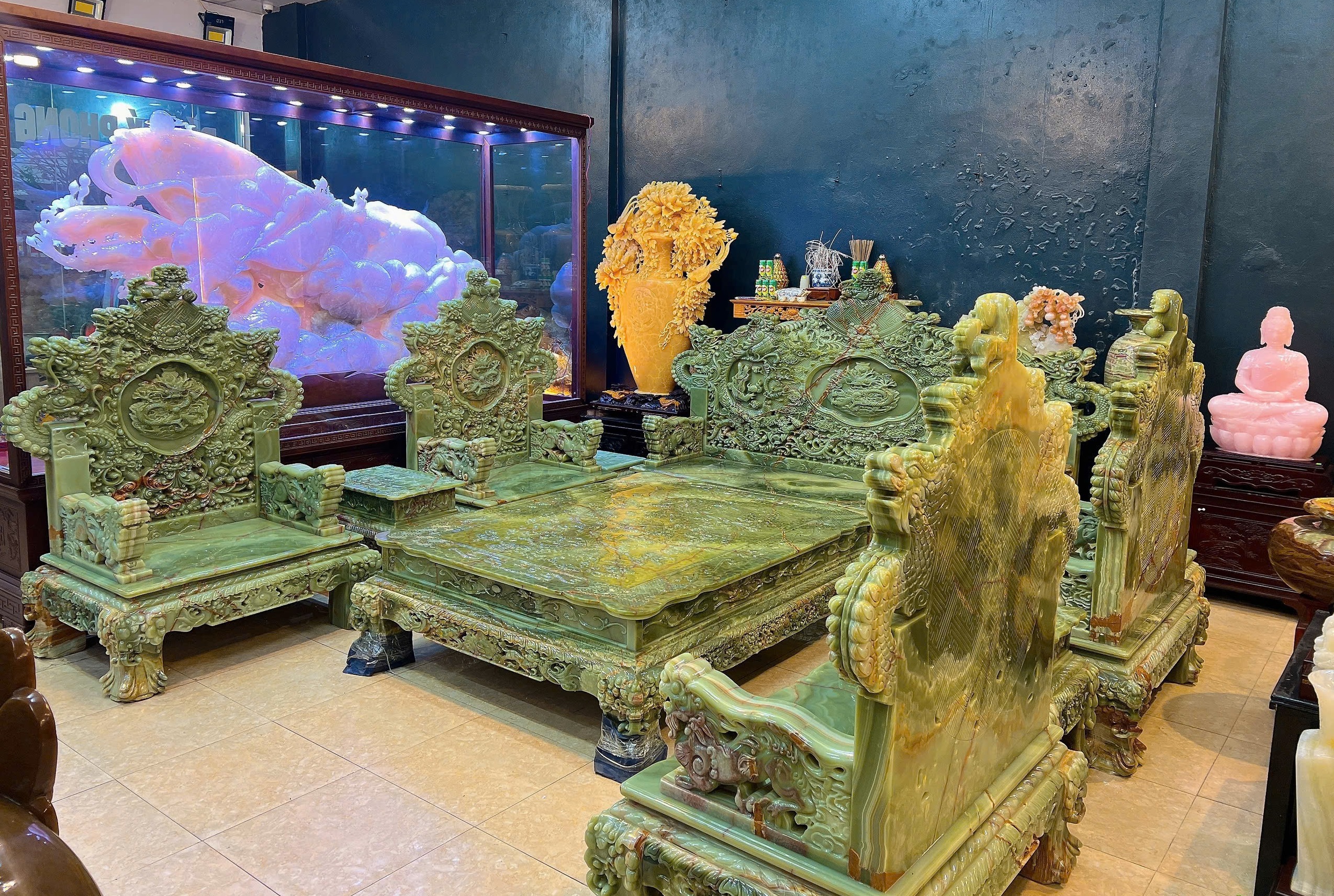 Trong lĩnh vực kinh doanh, phong thủy đóng vai trò quan trọng trong việc tối ưu không gian làm việc, giúp thu hút tài lộc, tạo động lực phát triển và duy trì sự ổn định. Nhiều doanh nhân lựa chọn các vật phẩm phong thủy từ đá quý để trang trí không gian làm việc, không chỉ vì giá trị thẩm mỹ mà còn bởi ý nghĩa phong thủy sâu sắc mà chúng mang lại. Những tác phẩm như bộ bàn ghế ngọc Onyx nguyên khối tượng trưng cho sự trường tồn, vững chắc, sập ngọc Hoàng Long thể hiện tinh hoa quyền quý, phù hợp với biệt thự và không gian cao cấp, hay lẵng hoa quả Phú Quý đại diện cho sự thịnh vượng và viên mãn, đều là những lựa chọn được săn đón để gia tăng vượng khí cho không gian sống và doanh nghiệp.