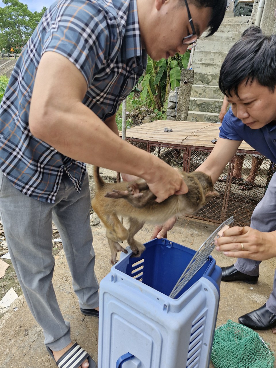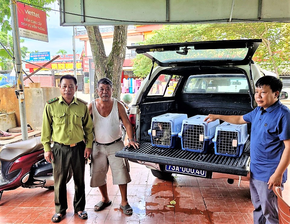 Cán bộ khu bảo tồn thiên nhiên trực tiếp nhận bàn giao khỉ để thả về rừng