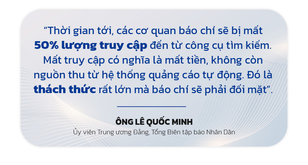 Như vậy, có thể thấy trong thời gian tới, các cơ quan báo chí sẽ bị mất 50% lượng truy cập đến từ công cụ tìm kiếm. Mất truy cập có nghĩa là mất tiền, không còn nguồn thu từ hệ thống quảng cáo tự động. Đó là thách thức rất lớn mà báo chí sẽ phải đối mặt trong tương lai.