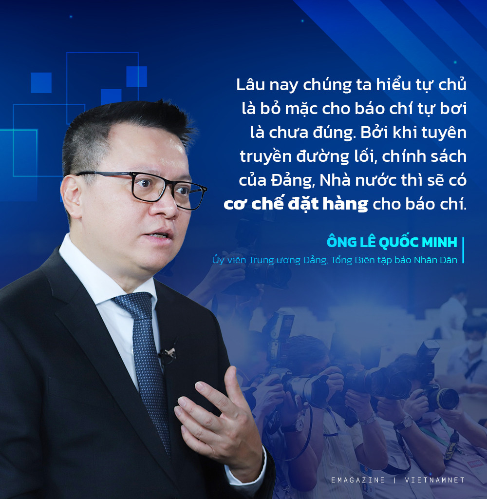 Báo chí cũng như những hoạt động khác của nền kinh tế, nhưng nó mang một sứ mệnh rất đặc biệt, sản phẩm tạo ra nguồn thu cũng rất đặc biệt. Do vậy, bỏ cơ chế bao cấp, báo chí đứng ra tự chủ là phù hợp với xu thế. Tuy nhiên, lâu nay chúng ta hiểu tự chủ là bỏ mặc cho báo chí tự bơi là chưa đúng. Bởi khi tuyên truyền đường lối, chính sách của Đảng, Nhà nước thì sẽ có cơ chế đặt hàng cho báo chí. Đó là cơ hội cho các cơ quan báo chí phối hợp với bộ ngành, tỉnh, thành để thể hiện sứ mệnh truyền thông chính sách.