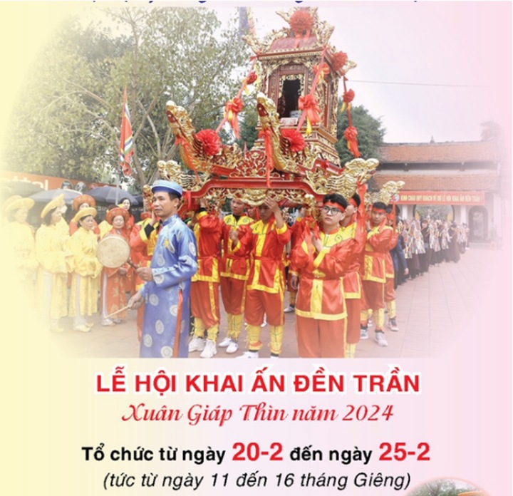 Lễ hội Khai ấn đền Trần năm 2024 sẽ diễn ra trong 5 ngày từ ngày 20/2 đến 25/2 (tức ngày 11-16 tháng Giêng âm lịch) với nhiều hoạt động văn hóa truyền thống mang đậm bản sắc văn hóa địa phương. Ngoài ra, năm nay lễ hội sẽ có nhiều điểm mới so với những năm trước như có thêm các hoạt động triển lãm sinh vật cảnh, các trò chơi truyền thống dân gian, triển lãm diều sáo, trưng bày các sản phẩm OCOP của tỉnh, các hoạt động văn hóa văn nghệ như hát xẩm, hát văn, múa rối nước...