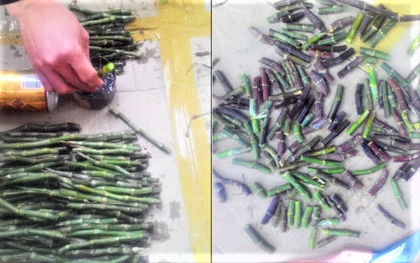 Đầu tiên, bạn chọn thân lan đem đi ươm giống, sau đó cắt ra thành từng đoạn ngắn để đi ươm. Theo kinh nghiệm, thân lan càng già, gầy, có nhiều mắt đã ra hoa thì bạn nên cắt thành từng đoạn dài khoảng 20-30cm hoặc để nguyên không cắt. Ngược lại, những thân lan mập mạp, có nhiều mắt chưa ra hoa thì bạn cắt đoạn ngắn hơn cỡ 2-3 mắt, nếu thân lan khá mập thì mỗi đoạn có thể có 1 mắt ngủ là được.