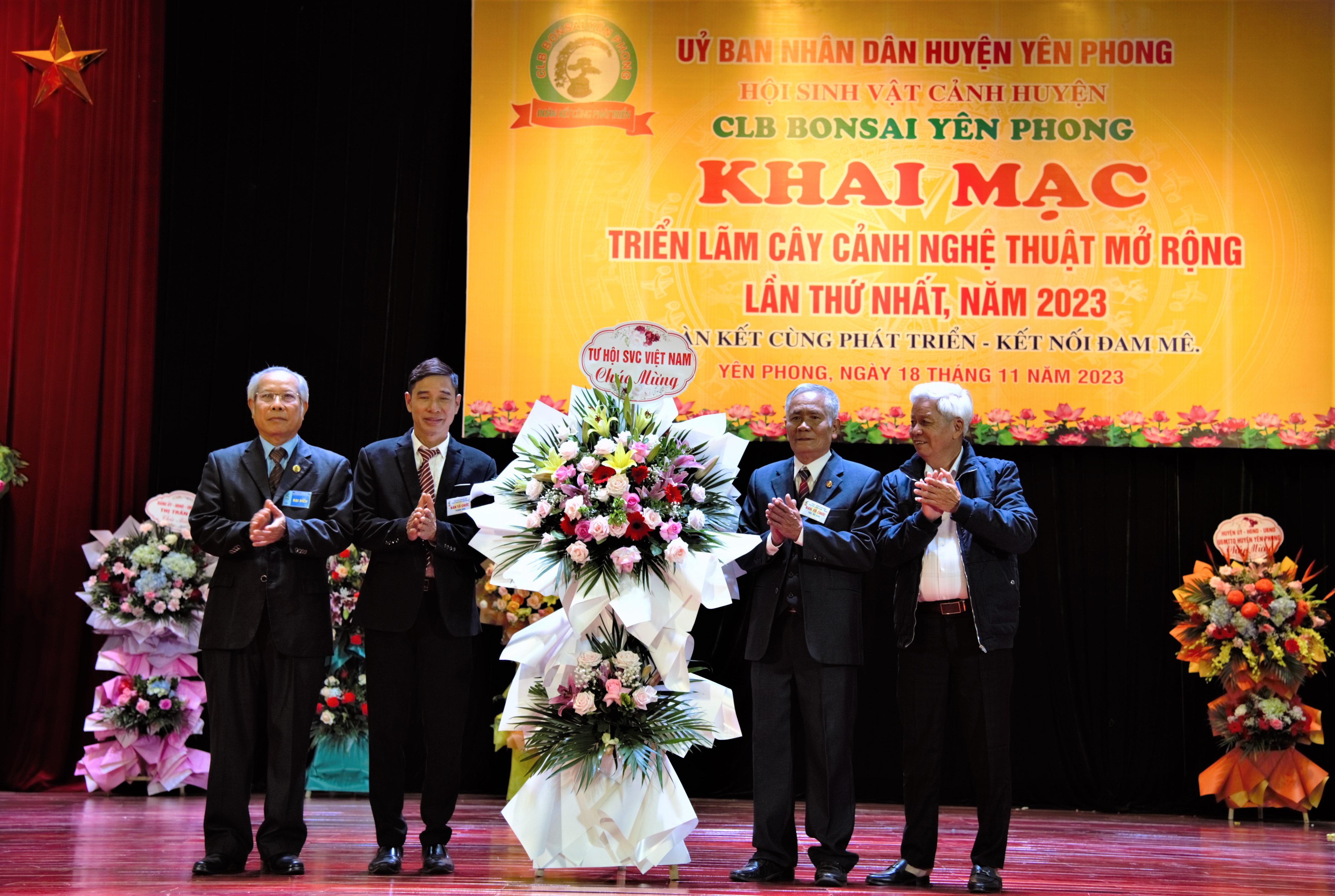 Sáng 18 tháng 11 năm 2023 tại Hội trường Trung tâm huyện Yên Phong, thị trấn Chờ Câu lạc bộ Bonsai Yên Phong thuộc Hội SVC huyện Yên Phong, tỉnh Bắc Ninh đã khai mạc triển lãm cây cảnh nghệ thuật mở rộng lần thứ nhất năm 2023. Đến dự khai mạc triển lãm có lãnh đạo Hội SVC Việt Nam ông Nguyễn Gia Thọ Phó Chủ tịch Thường trực, ông Phạm Ngọc Tạo Phó Chủ tịch Hội, lãnh đạo UBND huyện Yên Phong có Nguyễn Anh Tuấn Bí thư huyện ủy, ông Nguyễn Chí Cường Chủ tịch huyện Yên Phong và đông đảo nhà vườn, nghệ nhân, clb trong và ngoài tỉnh.