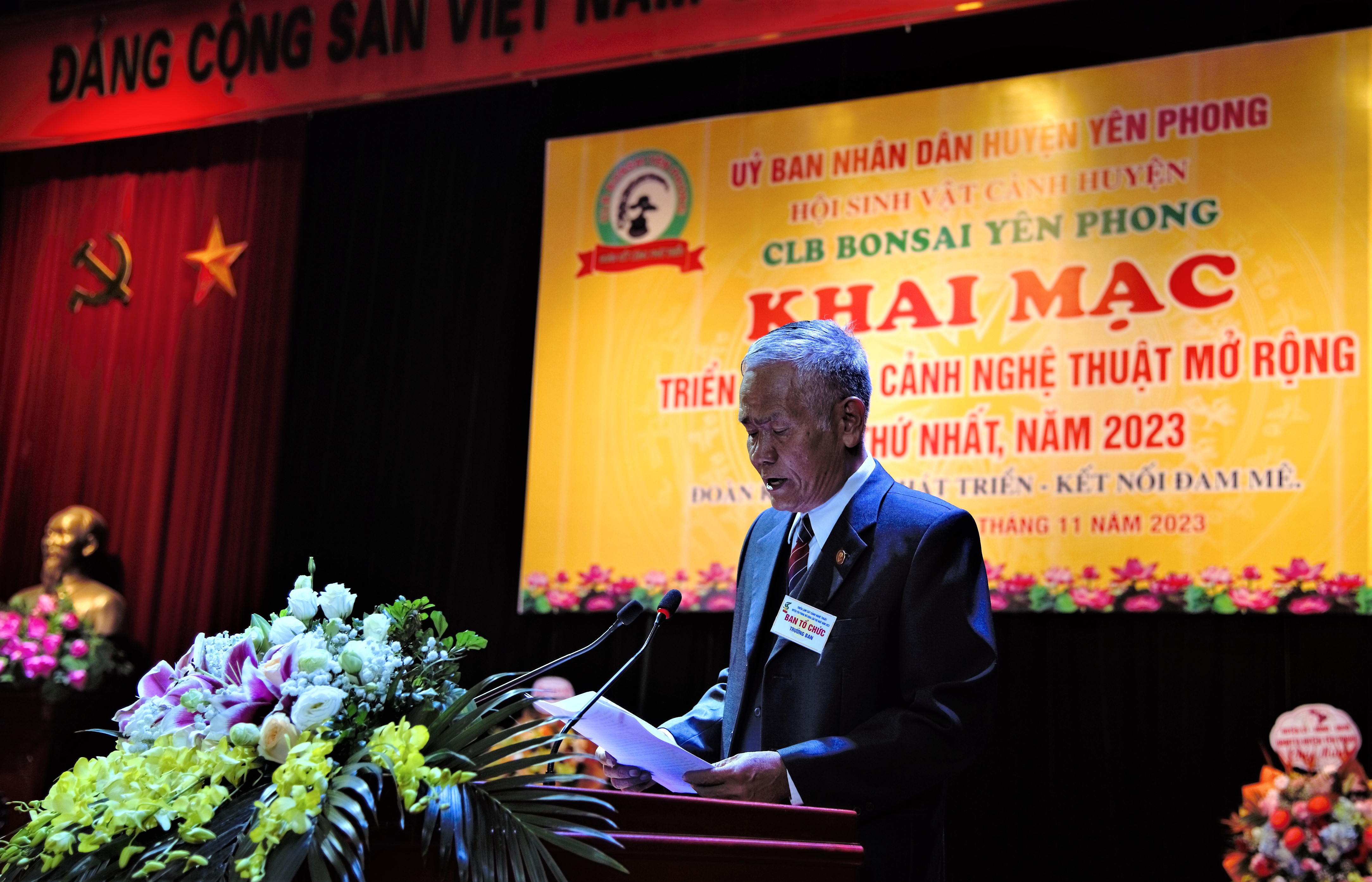 Ông Nguyễn Công Bảo Chủ tịch CLB Bonsai Yên Phong tuyên bố khai mạc triển lãm