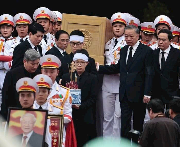 Sau lễ truy điệu, linh cữu của Tổng Bí Thư Nguyễn Phú Trọng đã được chuyển lên linh xa và di chuyển tới nghĩa trang Mai Dịch – nơi ông sẽ yên nghỉ mãi mãi bên các vị lãnh đạo tiền bối của dân tộc Việt Nam.