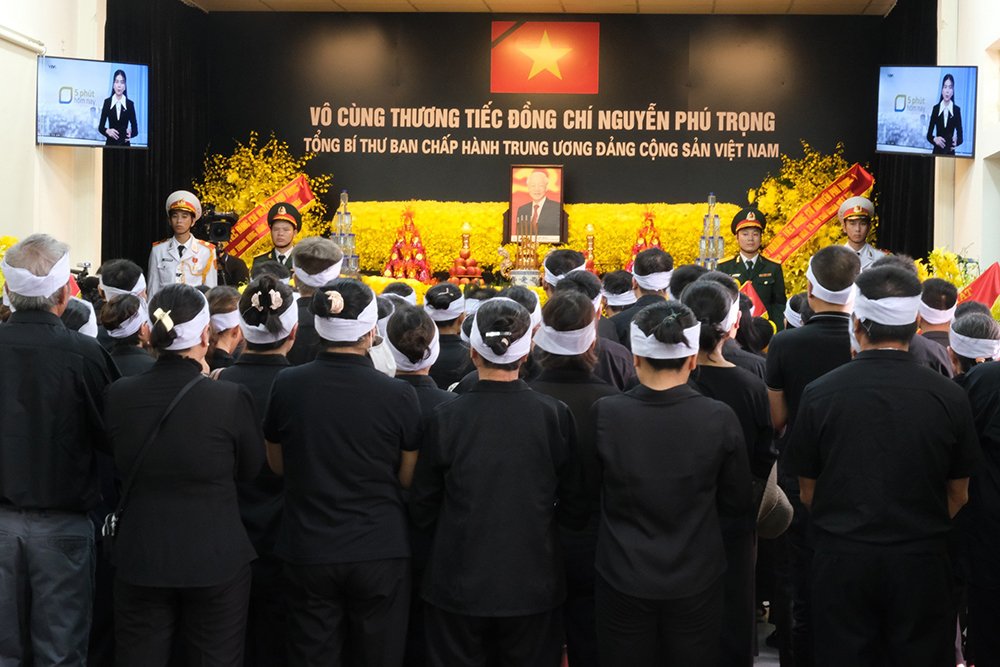 VNHS - Ngày 26/7, Ban Chấp hành Trung ương Đảng, Quốc hội, Chủ tịch nước, Chính phủ, Ủy ban Trung ương Mặt trận Tổ quốc Việt Nam và gia đình đã tổ chức trọng thể Lễ truy điệu đồng chí Nguyễn Phú Trọng, Tổng Bí thư Ban Chấp hành Trung ương Đảng Cộng sản Việt Nam, theo nghi thức Quốc tang tại Nhà tang lễ Quốc gia (Hà Nội), Hội trường Thống Nhất (Thành phố Hồ Chí Minh) và Hội trường Nhà văn hóa thôn Lại Đà, xã Đông Hội, huyện Đông Anh (Hà Nội). Sau lễ truy điệu, thi hài Tổng Bí thư Nguyễn Phú Trọng sẽ được an táng trọng thể tại nghĩa trang Mai Dịch.