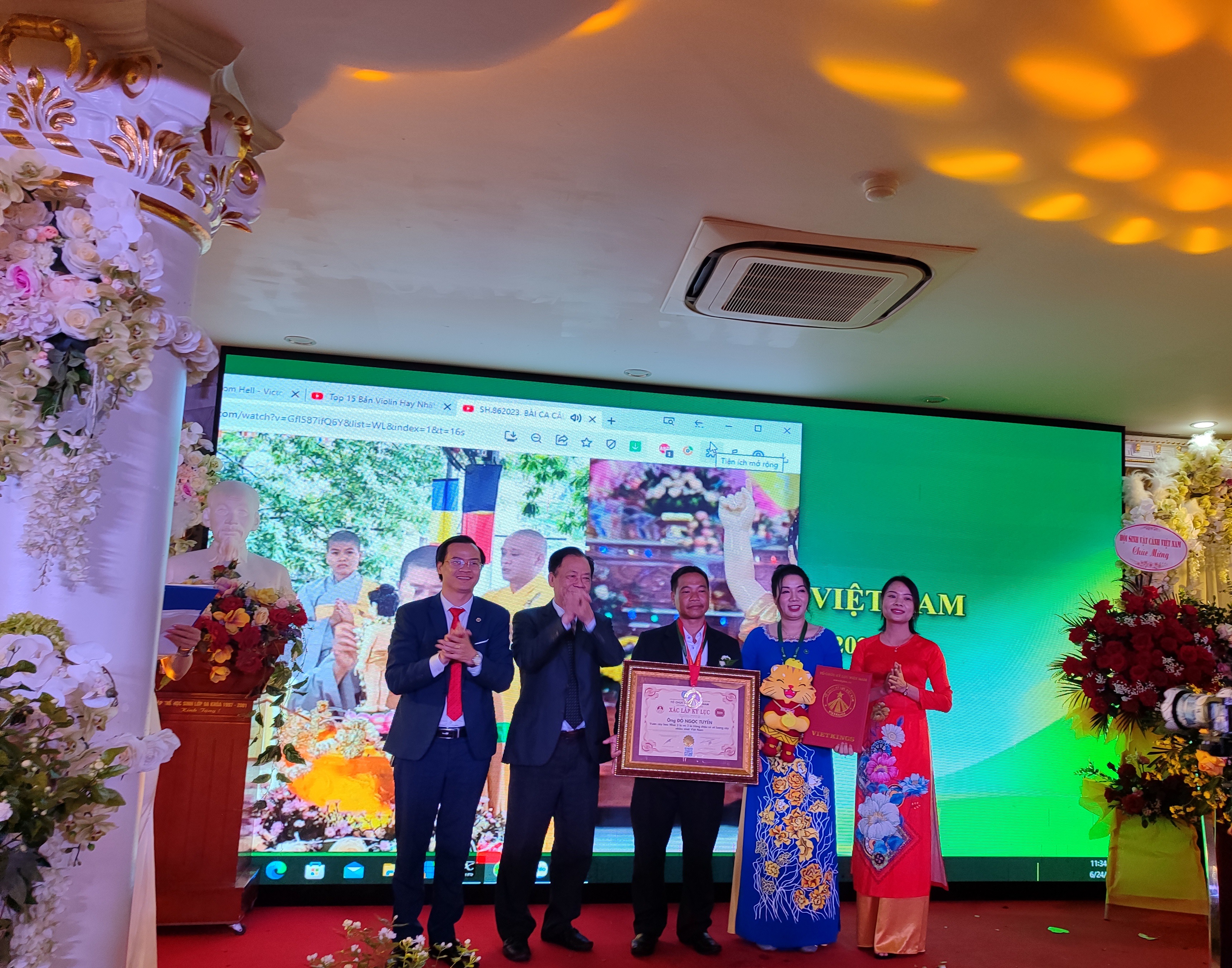 Cũng tại Đại Hội Tổ chức Kỷ lục gia Việt Nam đã trao xác lập kỷ lục vườn cây hoa nhài 2 lá và 3 lá trồng chậu có số lượng cây nhiều nhất Việt Nam cho nhà vườn ông Đỗ Ngọc Tuyển.