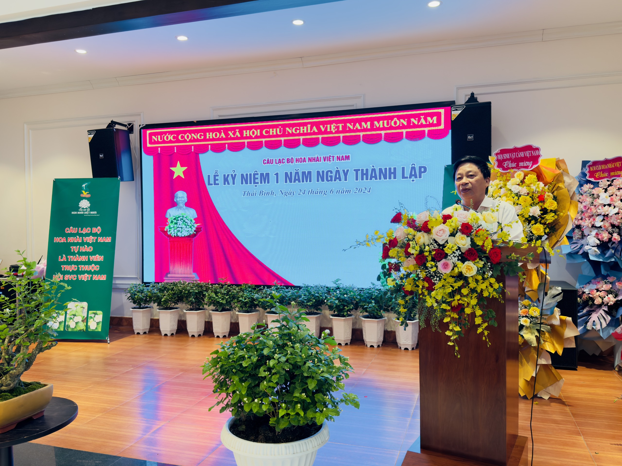 VNHS - Sáng ngày 23/6/2024 tại thành phố Thái Bình, tỉnh Thái Bình, Câu lạc bộ (CLB) Hoa Nhài Việt Nam đã tổ chức lễ kỷ niệm 1 năm ngày thành lập CLB Hoa Nhài Việt Nam (24/6/2023 - 24/6/2024). Sự kiện là dịp để tòan thể hội viên CLB nhìn lại những cố gắng, nỗ lực của Ban Chủ nhiệm và hội viên trong năm đầu tiên hoạt động, đồng thời thể hiện những mong muốn và quyết tâm nắm bắt cơ hội, vượt qua thách thức, đưa hoạt động củaCLB vươn lên những tầm cao mới trong thời gian tới.