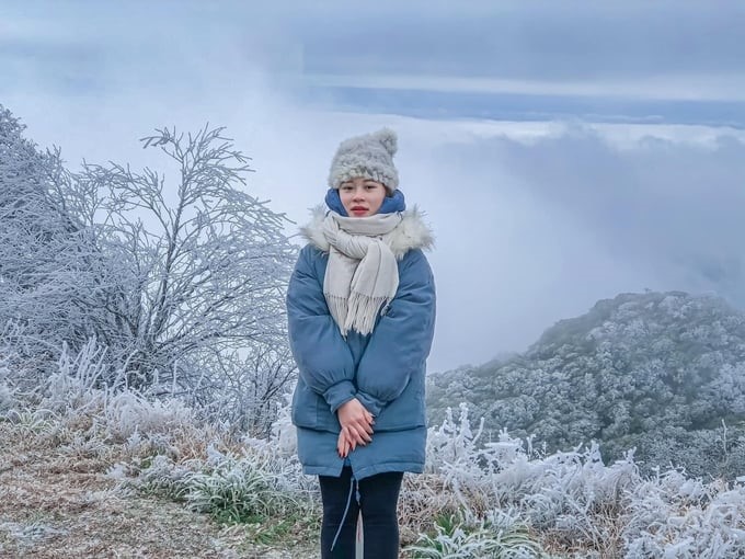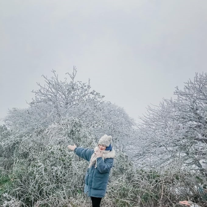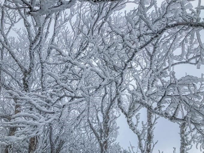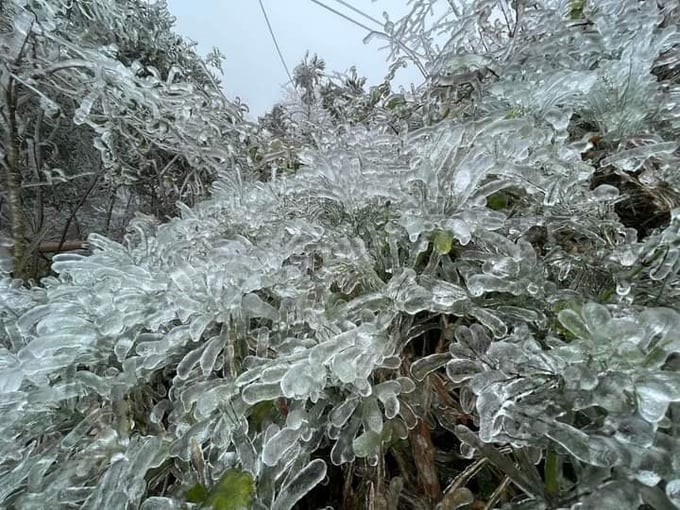 Băng giá trên đỉnh Phja Oắc tạo khung cảnh hùng vĩ, tráng lệ.