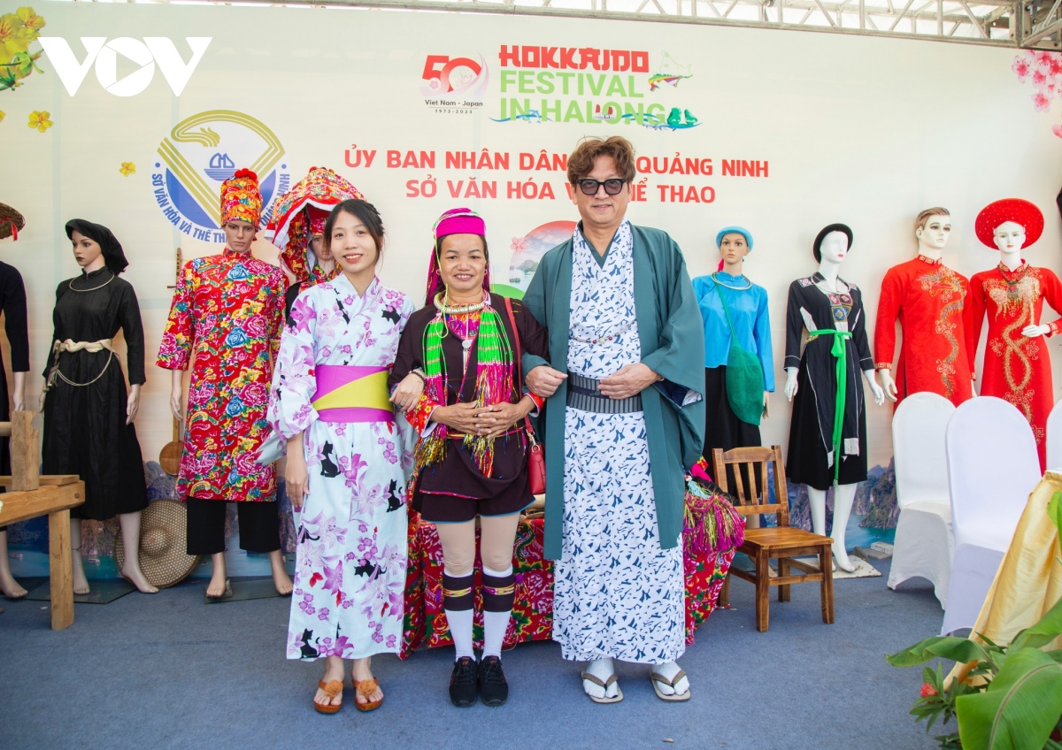 Nằm trong chuỗi hoạt động kỷ niệm 50 năm thiết lập quan hệ ngoại giao Việt Nam - Nhật Bản (1973 - 2023), Lễ hội Hokkaido tại thành phố Hạ Long năm 2023 được tổ chức với nhiều hoạt động đậm nét văn hoá Nhật Bản. Bà Lý Thị Bình (đứng giữa, ở huyện Bình Liêu, tỉnh Quảng Ninh) tự hào khi vừa được tham dự lễ hội, giao lưu văn hoá giữa hai quốc gia, vừa có thể quảng bá những nét đẹp trong trang phục, văn hoá của đồng bào dân tộc thiểu số ở tỉnh Quảng Ninh đến du khách trong và ngoài nước.