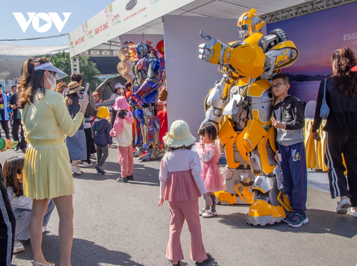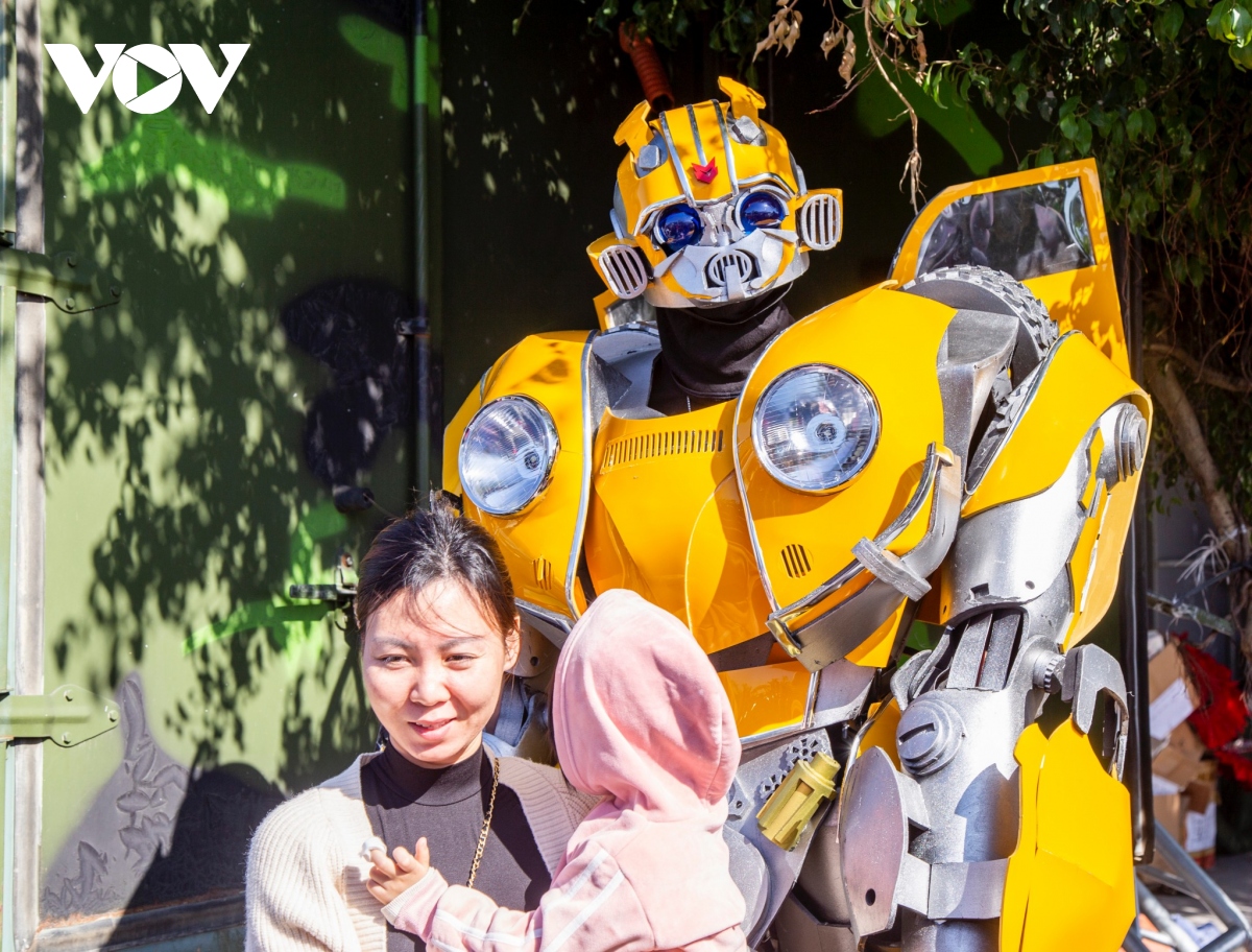 Màn hóa trang thành người máy biến hình Transfomers thu hút đông đảo bạn nhỏ đến chiêm ngưỡng, chụp ảnh.