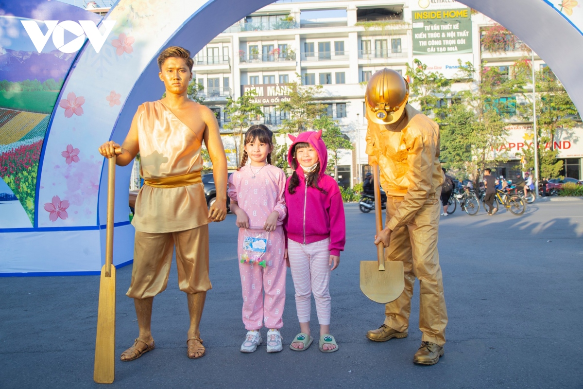 Du khách thích thú check-in với nhân tượng ngư dân, thợ mỏ