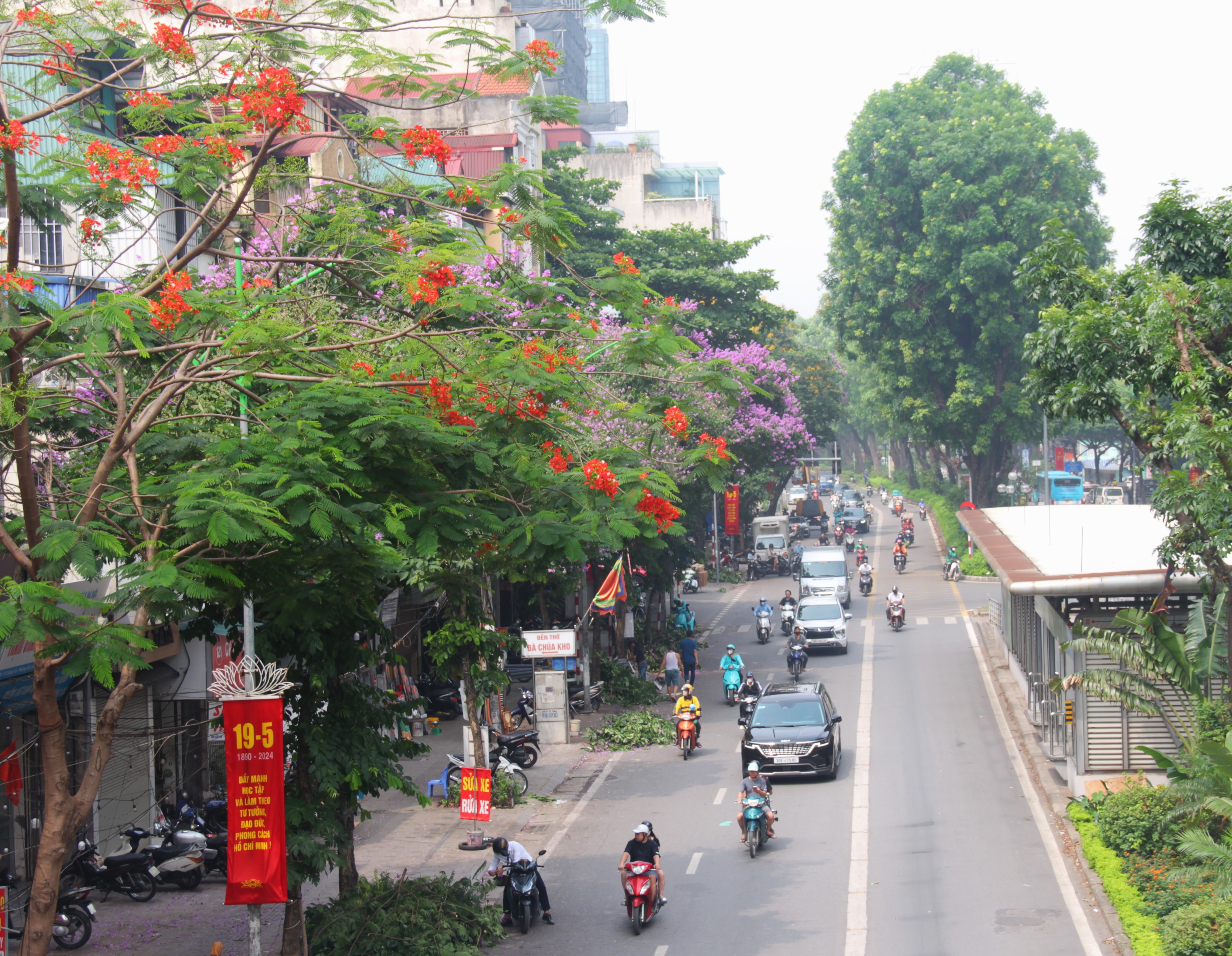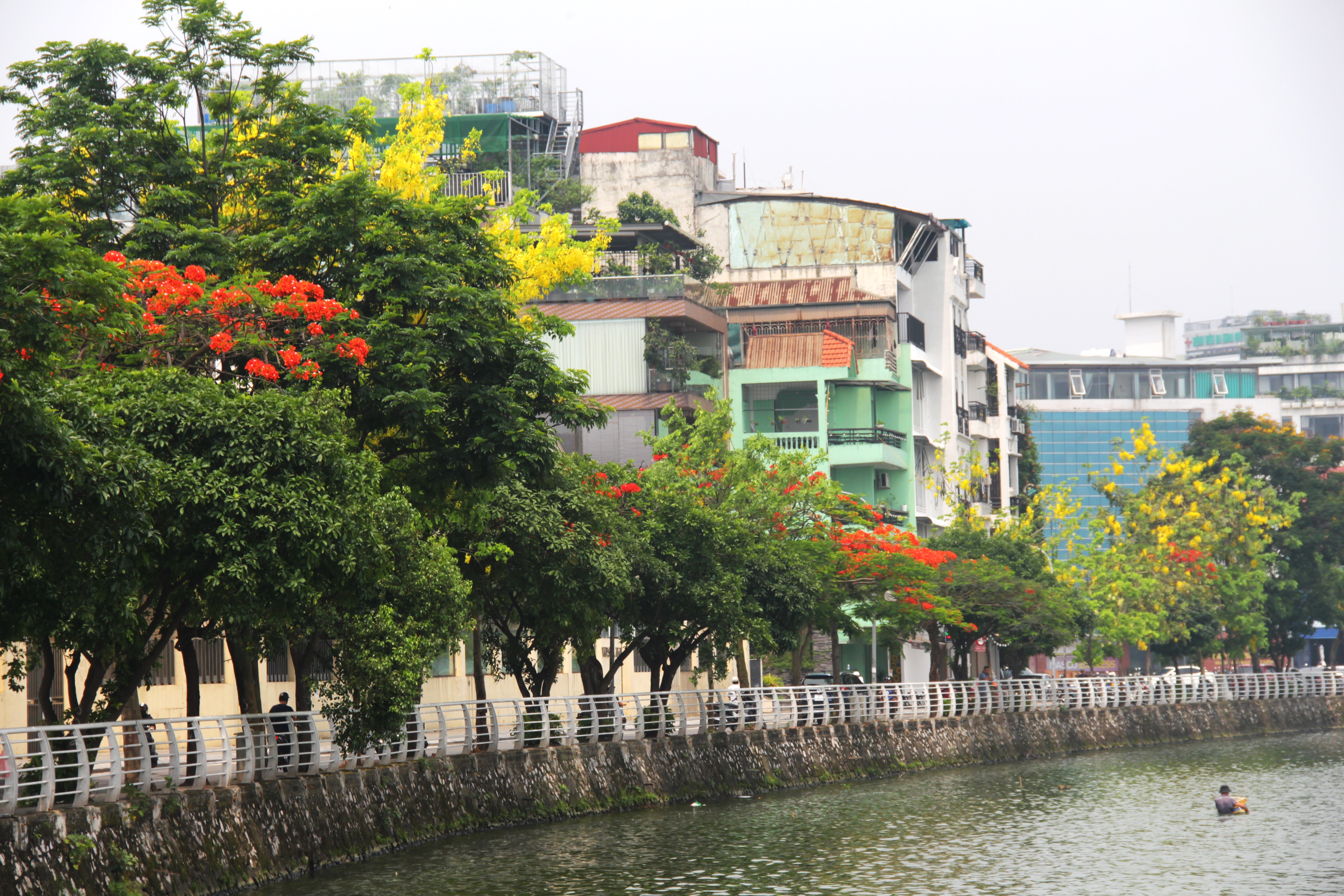 Hoa phượng nở đỏ rực ven sông Tô Lịch