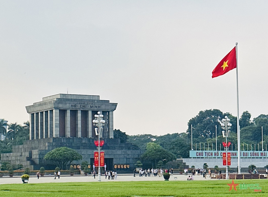Những ngày gần đây, khu vực Quảng trường Ba Đình, nhiều tuyến phố, trước Phủ Chủ tịch, phố Phan Đình Phùng... và nhiều cơ quan ban ngành đã rộn ràng treo tấm pano, cờ hoa rực rỡ để chào đón lễ kỷ niệm này.
