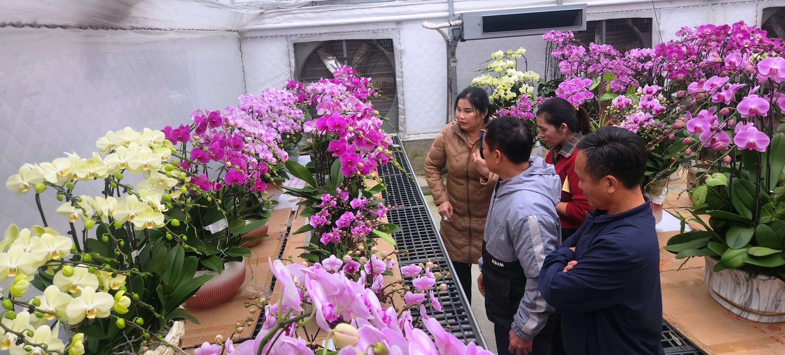 Anh Phạm Văn Huy (ngụ tại thôn Thanh Lan, xã Thạch Khê, TP.Hà Tĩnh). Sau gần 1 năm chăm sóc, vườn lan hồ điệp với nhiều màu sắc rực rỡ dự kiến sẽ được xuất bán ra thị trường dịp Tết Nguyên đán 2025 với khoảng hơn 60.000 cây. Giá mỗi cây hoa đang được bán tại vườn dao động từ 150.000 - 220.000 đồng, tùy loại. Nếu nhân lên với số cành thì một chậu lan hồ điệp đẹp sẽ có giá khoảng trên 15 triệu đến hơn 20 triệu đồng.