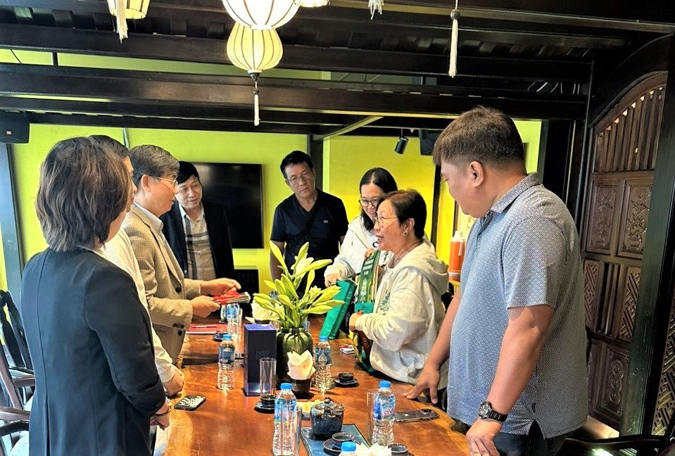 Bà Yumie - Chủ tịch Hội Bonsai Philippines trao giấy mời tham dự ASPAC16 cho TS. Nguyễn Hữu Vạn - Chủ tịch Hội SVC Việt Nam