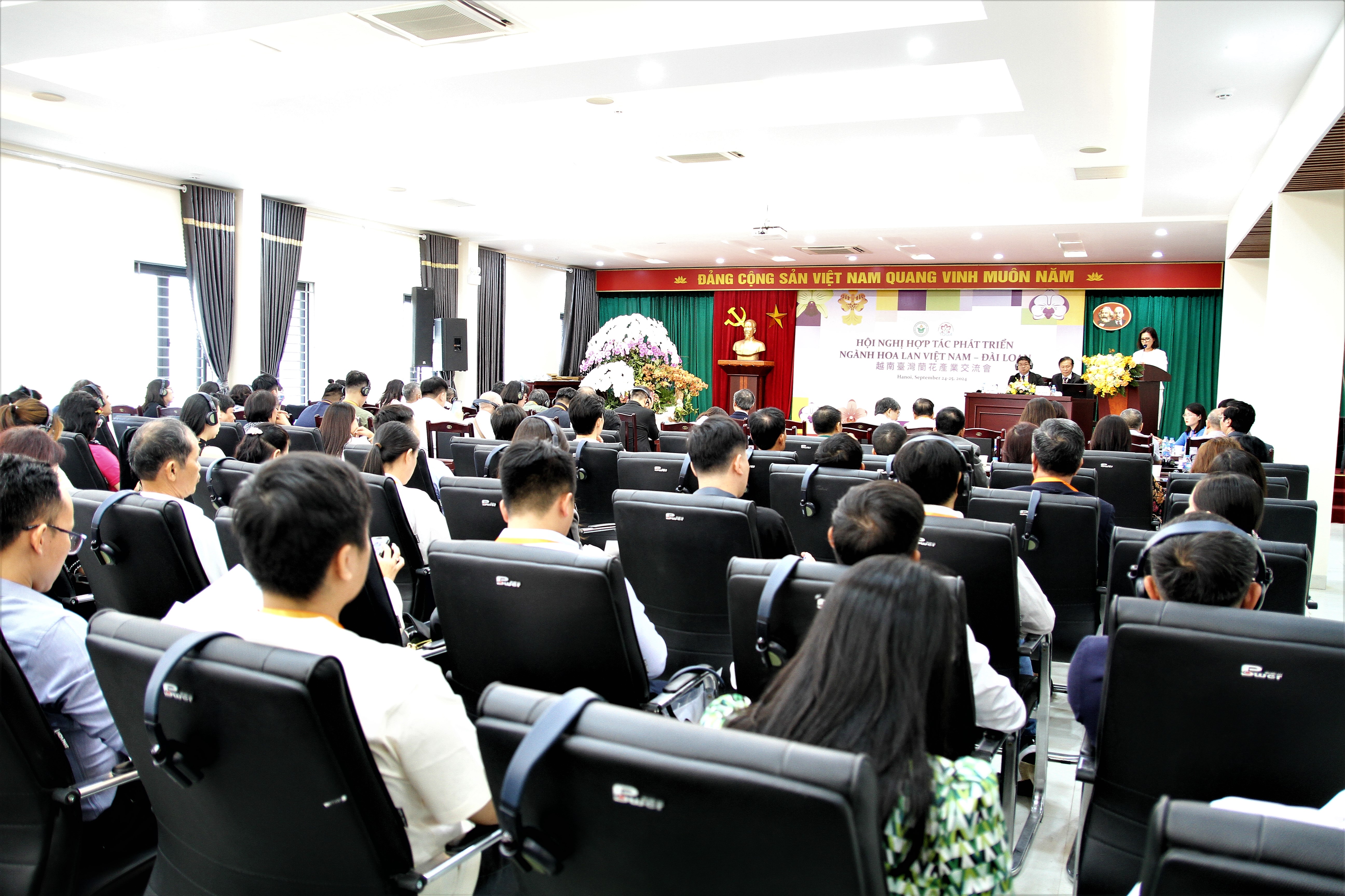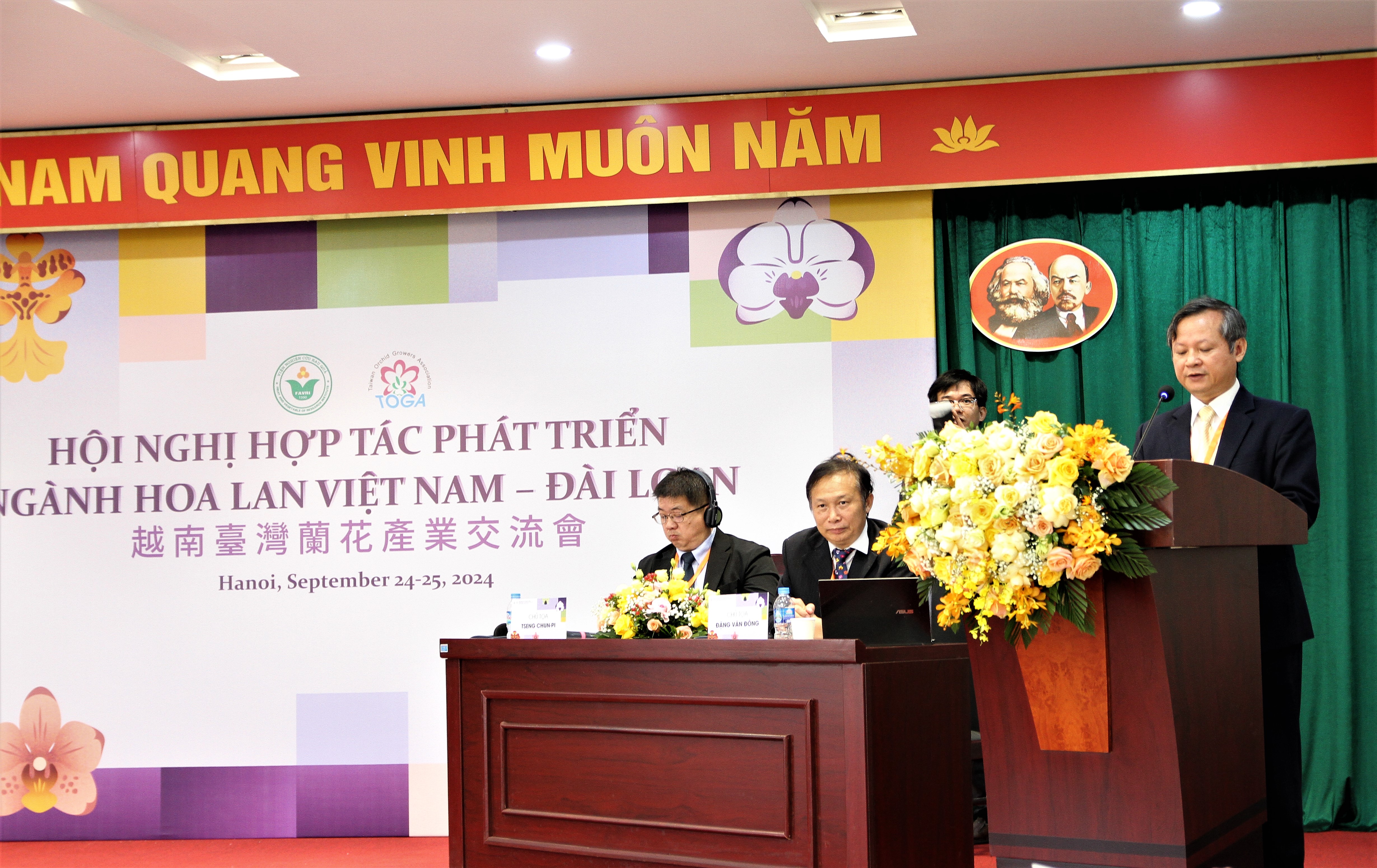 VNHS - Trong khuôn khổ hợp tác nghiên cứu, phát triển các giống hoa lan giữa Viện nghiên cứu rau quả Việt Nam (FAVRI) và Hiệp hội phát triển sản xuất và thương mại Hoa Lan Đài Loan (TOGA), sáng ngày 24/ 9/2024 tại Viện nghiên cứu rau quả Việt Nam đã diễn ra Hội nghị hợp tác phát triển ngành hoa lan Việt Nam - Đài Loan (Trung Quốc). Tham dự Hội nghị có bà Nguyễn Thị Hoàng Yến Phó Cục trưởng Cục kinh tế hợp tác - Bộ NN và PTNT, PGS.TS. Nguyễn Quốc Hùng - Viện Trưởng, PGS.TS. Đặng Văn Đông - Phó Viện Trưởng Viện nghiên cứu rau quả Việt Nam, GS Trần Duy Quý Chủ tịch Hiệp hội sản xuất kinh doanh Hoa lan Việt Nam, TS Nguyễn Hữu Vạn - Chủ tịch Hội SVC Việt Nam, Ông Tseng Chun Pi - Tổng thư ký Hiệp hội phát triển sản xuất và thương mại Hoa Lan Đài Loan và gần 200 đại biểu là các doanh nghiệp, đơn vị kinh doanh và làm vườn tại các tỉnh thành của Việt Nam, đại diện một số doanh nghiệp, trung tâm nghiên cứu hoa lan của Đài Loan.