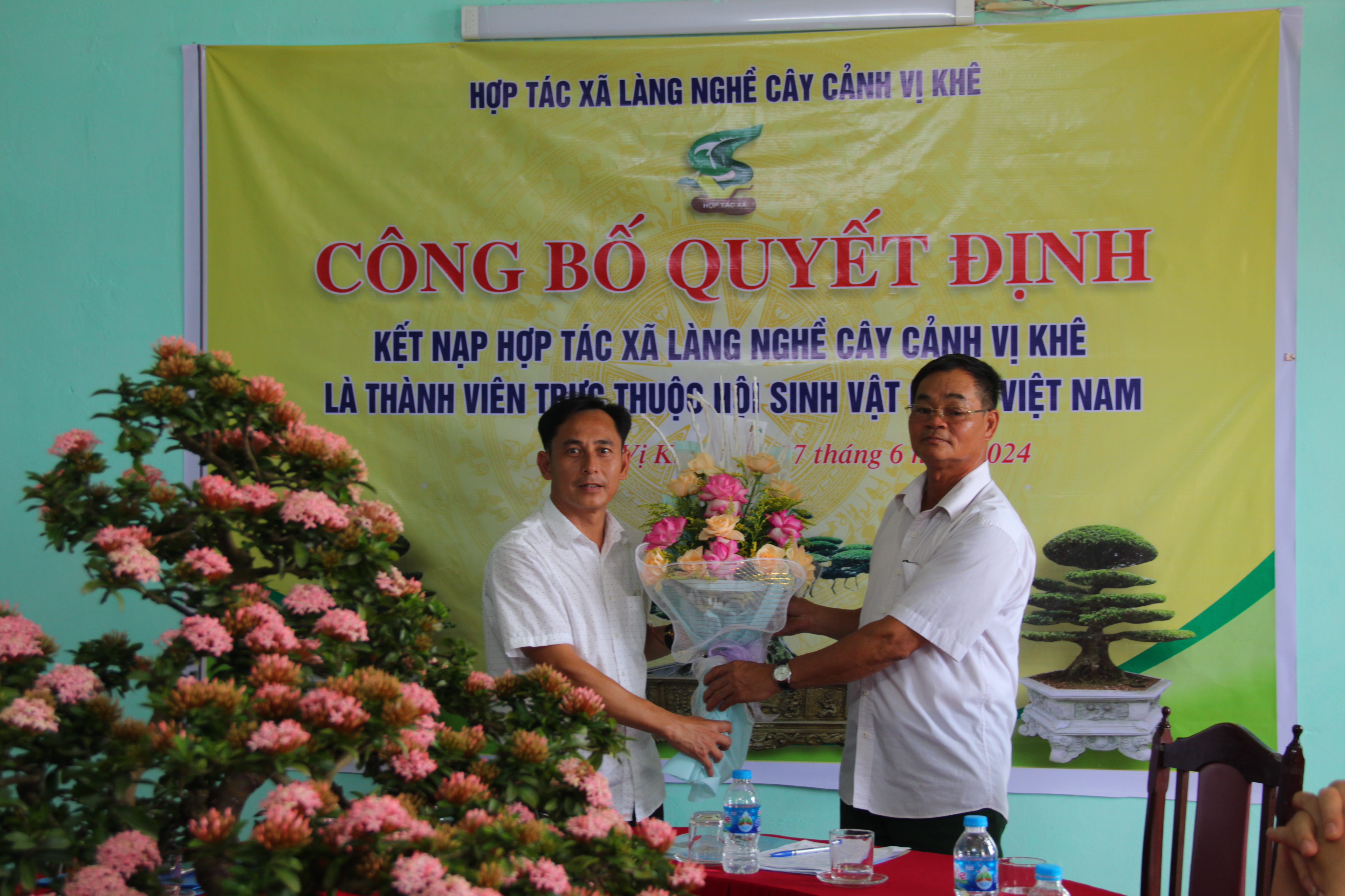 VNHS - Ngày 17.6 tại Nam Định, T.S Nguyễn Hữu Vạn, Chủ tịch Hội Sinh vật cảnh Việt Nam đã trao quyết định công nhận HTX làng nghề cây cảnh Vị Khê (xã Điền Xá, Nam Trực, Nam Định) trở thành hội viên mới của Hội Sinh vật cảnh Việt Nam.