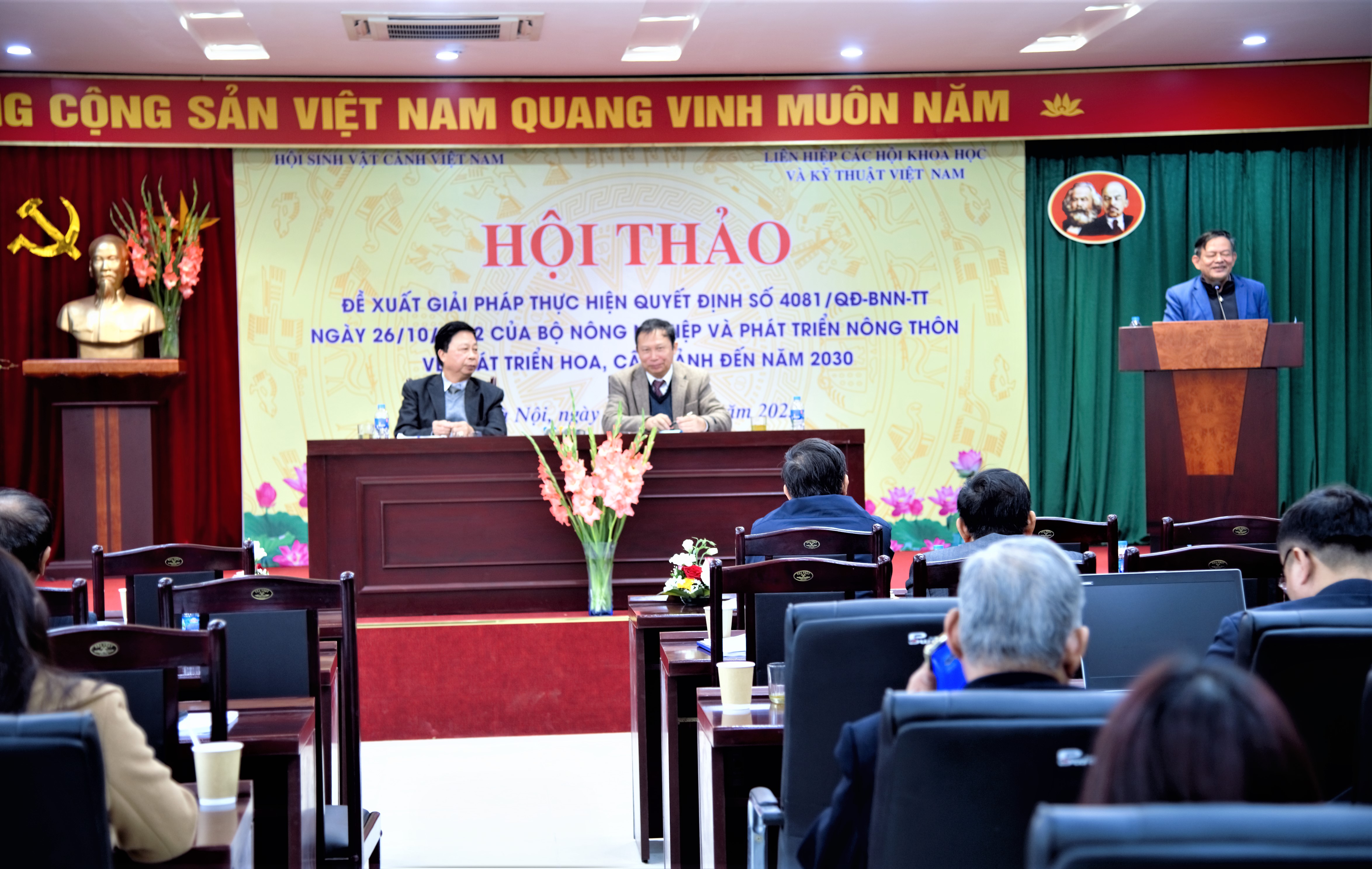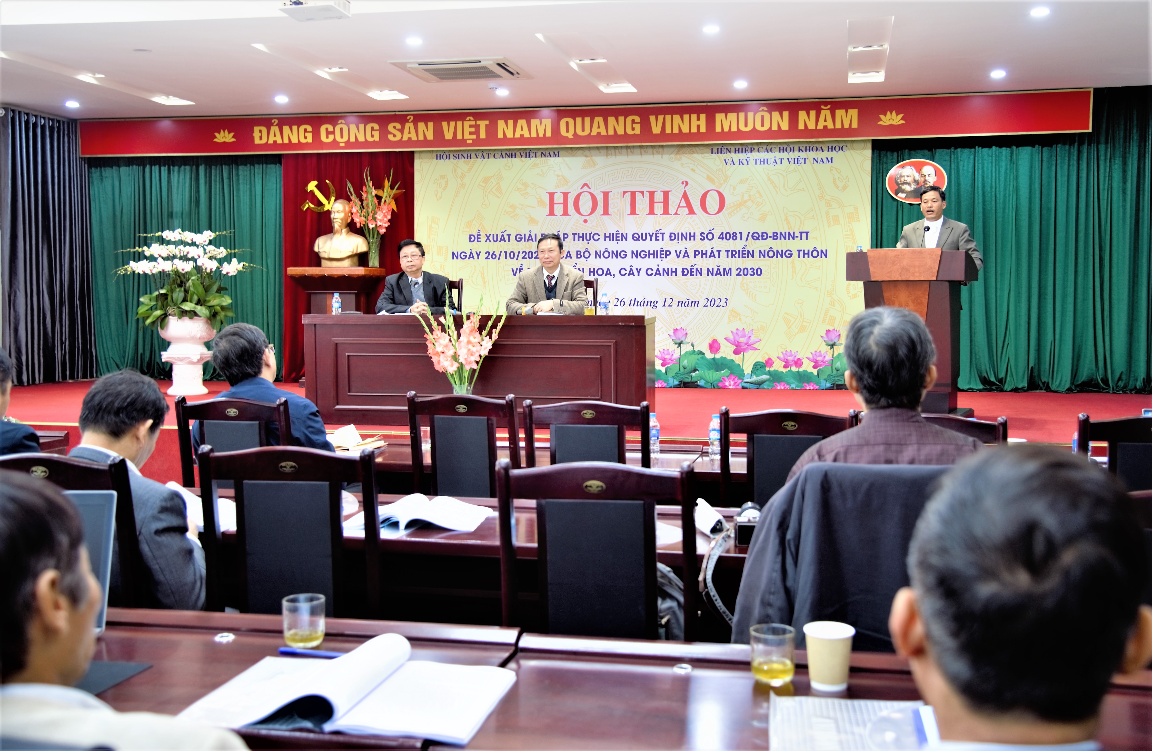 Sáng 26 tháng 12 năm 2023 tại Viện nghiên cứu rau quả, Liên Hiệp Hội Việt Nam và Hội Sinh vật cảnh Việt Nam cơ quan chủ trì thực hiện Hội thảo “Đề xuất giải pháp thực hiện Quyết định số 4081/QĐ-BNN-TT của Bộ Nông nghiệp và Phát triển nông thôn về phát triển hoa cây cảnh đến năm 2030”