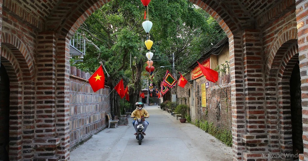 Dạo quanh khu vực làng cổ, đi dọc đường đê, hay len vào những con ngõ nhỏ là một trong những điều thú vị khi đến Làng gốm Bát Tràng. Những giàn phơi gốm dọc đường làng, những bức tường phủ rêu, cổng làng, sân đình, cột đá... chắc chắn sẽ làm nền cho những bức hình đậm chất vintage của bạn.