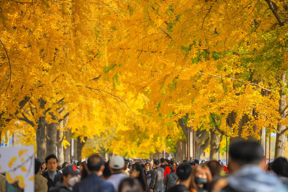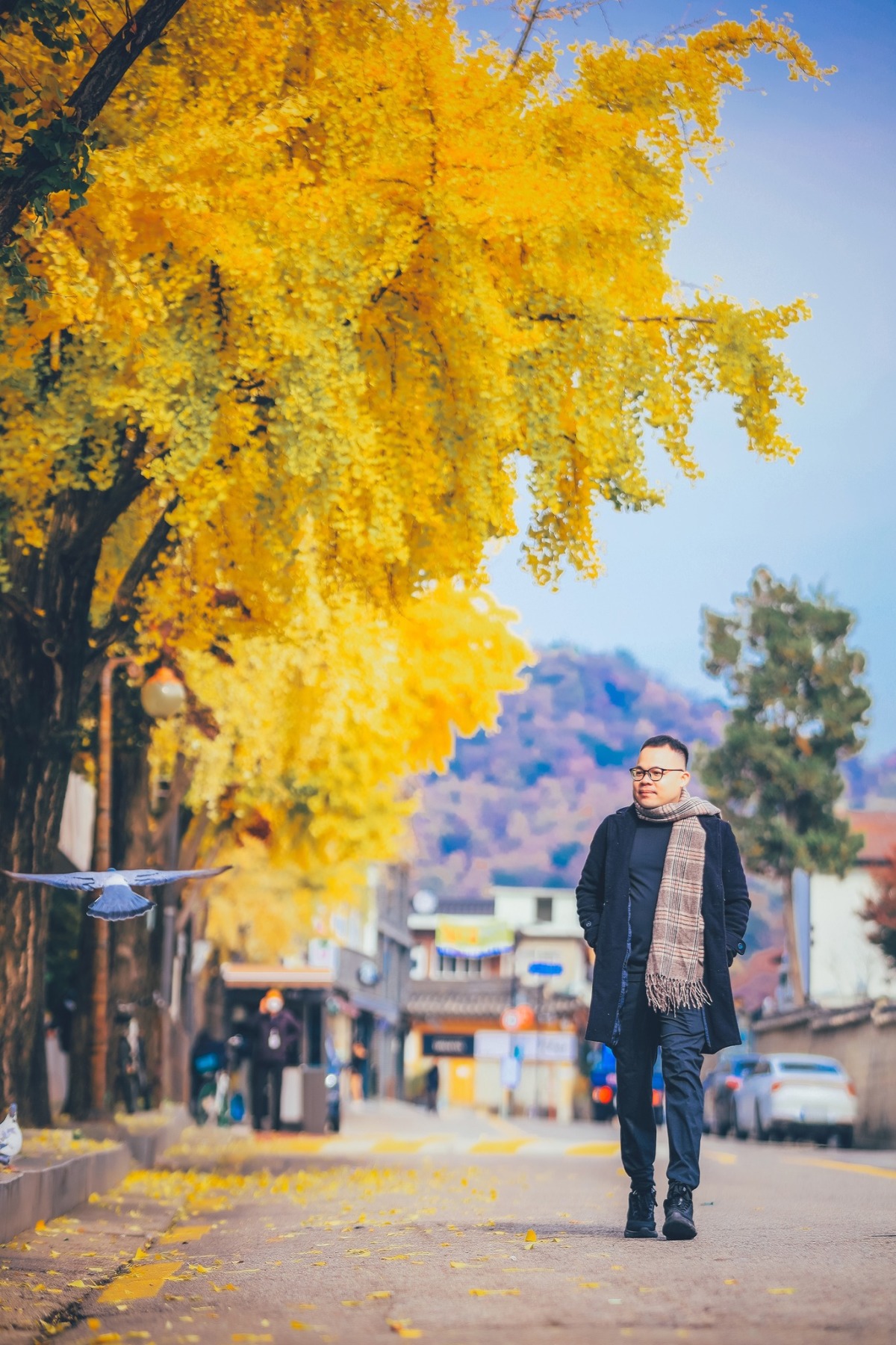 Con đường có hàng cây ngân hạnh này nhiều năm được xếp là đường có hàng cây đẹp nhất nước. Đây cũng là điểm đến đầu tiên của Vi Văn Thủy trong chuyến du lịch Hàn Quốc ngắm mùa thu. Ảnh: Vi Văn Thủy