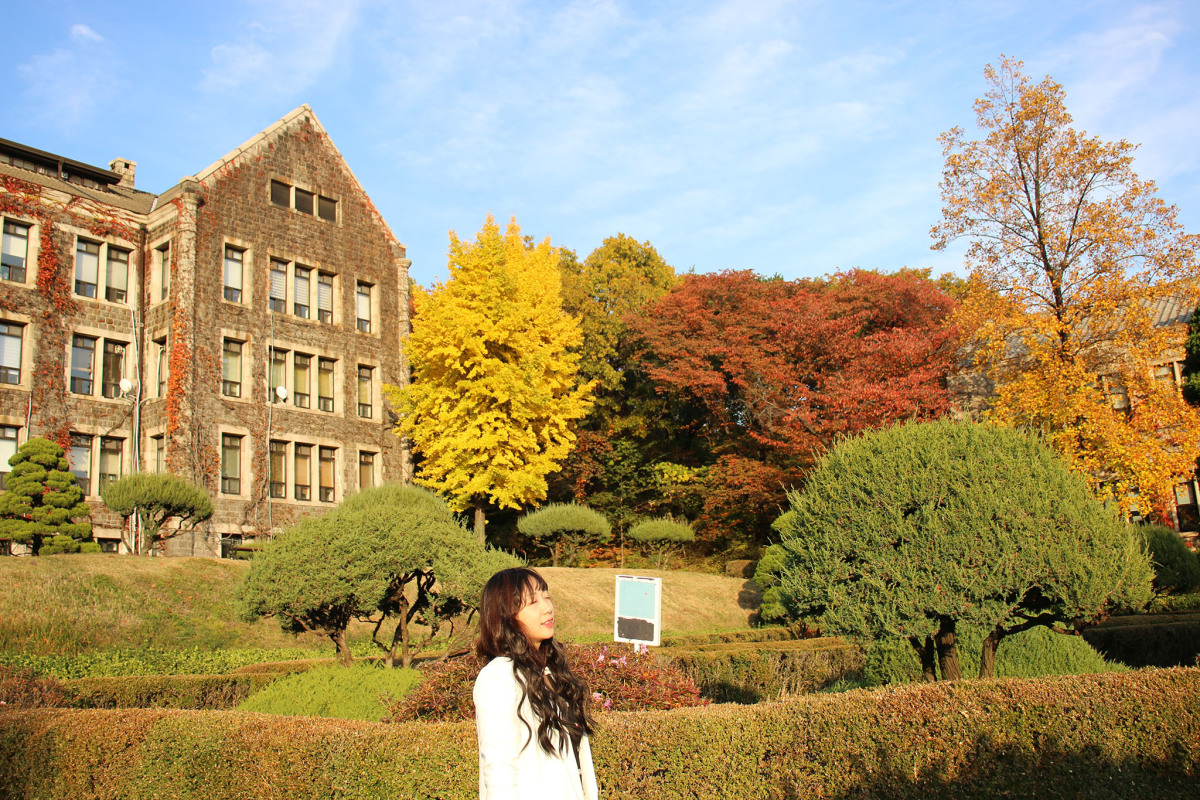 Đại học tư thục Yonsei là một trong những trường lâu đời và tốt nhất nước. Đây cũng là điểm đến hút khách check-in, chụp ảnh vì có lối kiến trúc, phong cảnh giống châu Âu. Ảnh: Lưu Ngọc Lan