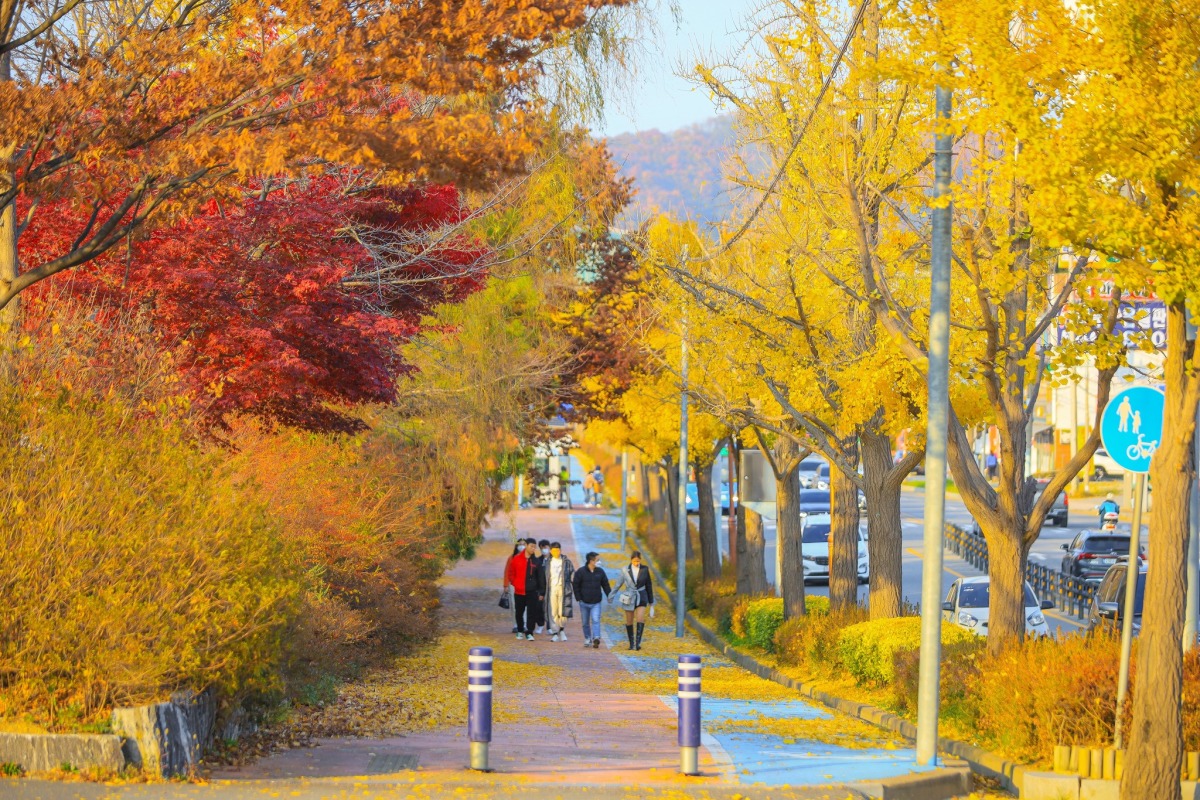 Hiện tại, thời tiết Hàn Quốc dao động từ 6 đến 17 độ C, trời có nắng, nên rất phù hợp để đi chơi, tham quan và chụp ảnh. Khách Việt hiện tại nhập cảnh Hàn Quốc chỉ cần mang sẵn chứng nhận tiêm vaccine phòng Covid-19, không cần cách ly hay xét nghiệm trước và sau khi đến. Trên ảnh là mùa thu vàng ở tỉnh North Gyeongsang. Ảnh: Vi Văn Thủy