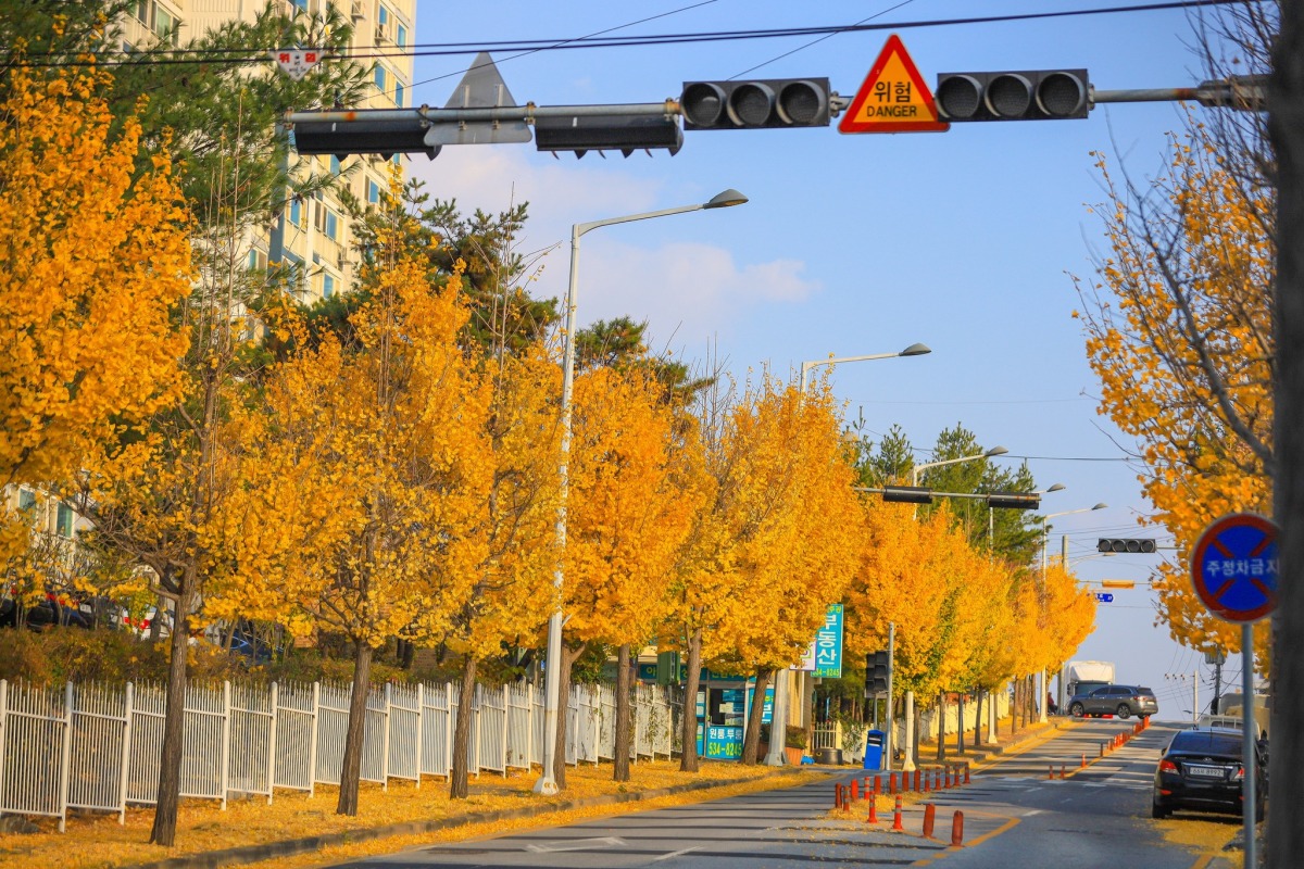 Trên ảnh là con đường hàng cây ngân hạnh (Ginko Tree) nổi tiếng, nằm ở phố Eunhaengnamu-gil, tỉnh North Gyeongsang, cách thủ đô Seoul hơn 200 km. Ảnh: Vi Văn Thủy