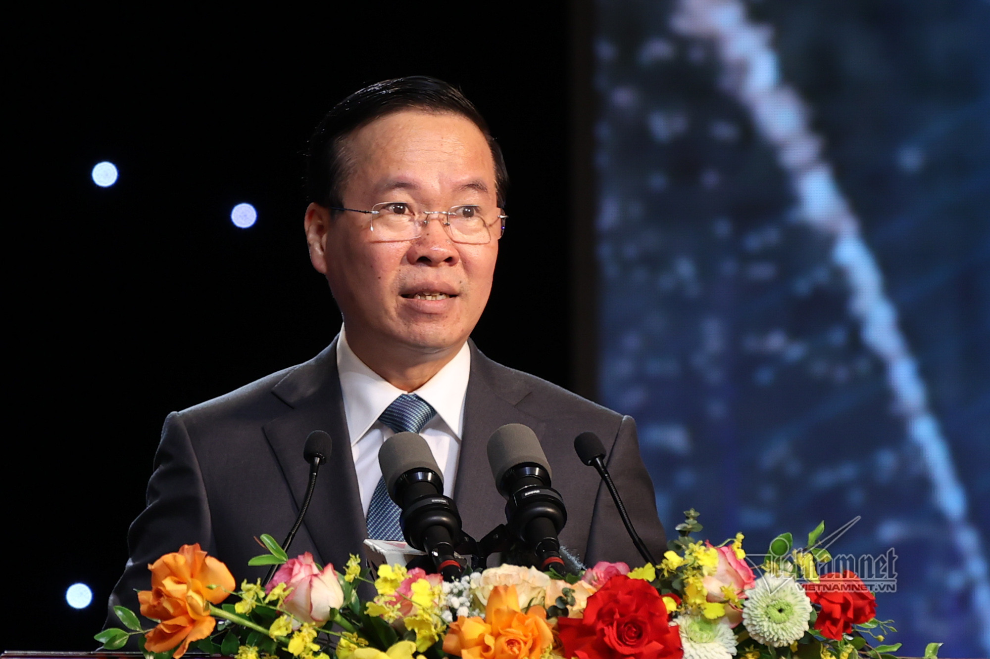 Chủ tịch nước Võ Văn Thưởng phát biểu tại Lễ trao Giải Báo chí quốc gia lần thứ XVII. (Ảnh: Phạm Hải)