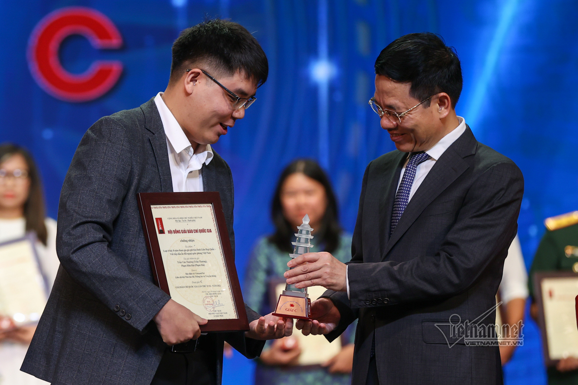 Bộ trưởng Bộ TT&TT Nguyễn Mạnh Hùng trao giải C cho tác giả Trần Văn Thường Báo VietNamNet.